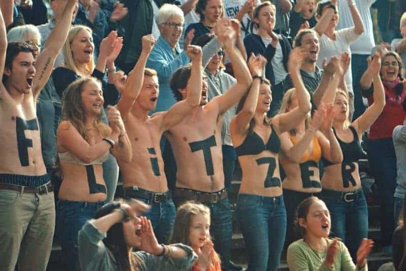 Mit feinen Strichen statt grossem Getue zeichnet Beat Schlatter den braven Lehrer Näf, der zum ersten Mal in seinem Leben ein Risiko eingeht, komplett scheitert und schliesslich über sich hinauswächst. «Manchmal muss man mutig sein!», schmachtet ihn seine neue Verehrerin beim ersten Date hoffnungsvoll an. Welche Lawine sie mit diesem Spruch auslöst, kann die verknallte Polizistin natürlich noch nicht ahnen. Die Episoden mit dem rabiaten Bauunternehmer oder einem eingeschleusten V-Mann in die Flitzer-Truppe mögen etwas arg klamottig ausfallen, aber sie haben durchaus dramaturgischen Mehrwert, schliesslich setzen sie den Helden wider Willen chronisch unter Zugzwang und zwingen ihn zu immer neuen Schachzügen. Mit einem recht flotten Tempo stolpert der verzweifelte Pädagoge von einem situationskomischen Schlamassel in das nächste, wobei im letzten Drittel vergnüglich die Spannungsschraube angezogen wird. Mit der schrägen Stripper-Truppe ist das Figurenkarussell gut besetzt. Ihre variantenreichen Flitzer-Auftritte fallen mit zunehmender Raffinesse immer amüsanter aus. Beim ganz grossen Finale vor vollbesetztem Stadion gelingt nicht nur die tricktechnische Illusion perfekt, auch der Feel-Good-Faktor gerät zum Volltreffer. Die Gehemmten und die Enthemmten, die Wabbeligen und die Gestählten schwärmen aus auf die Sportplätze, und die Schweizer schwärmen vom neuen Trend- und Volkssport, der den Fussball zur schönsten Nebensache macht, während alle auf den nächsten Nackten warten.