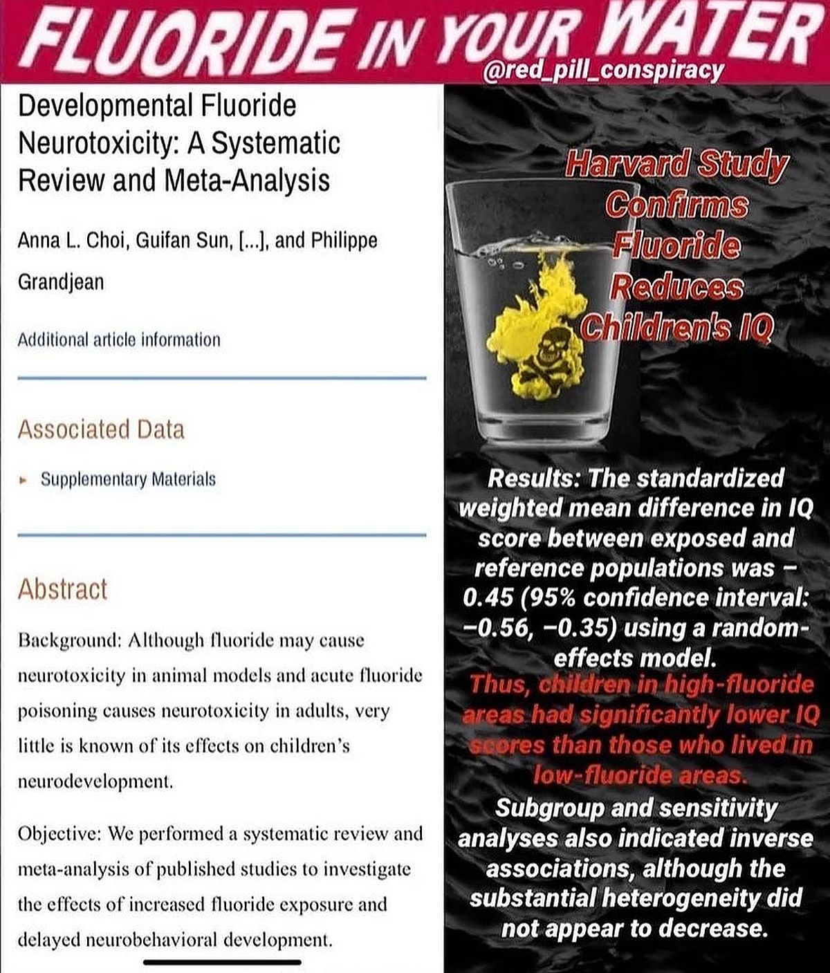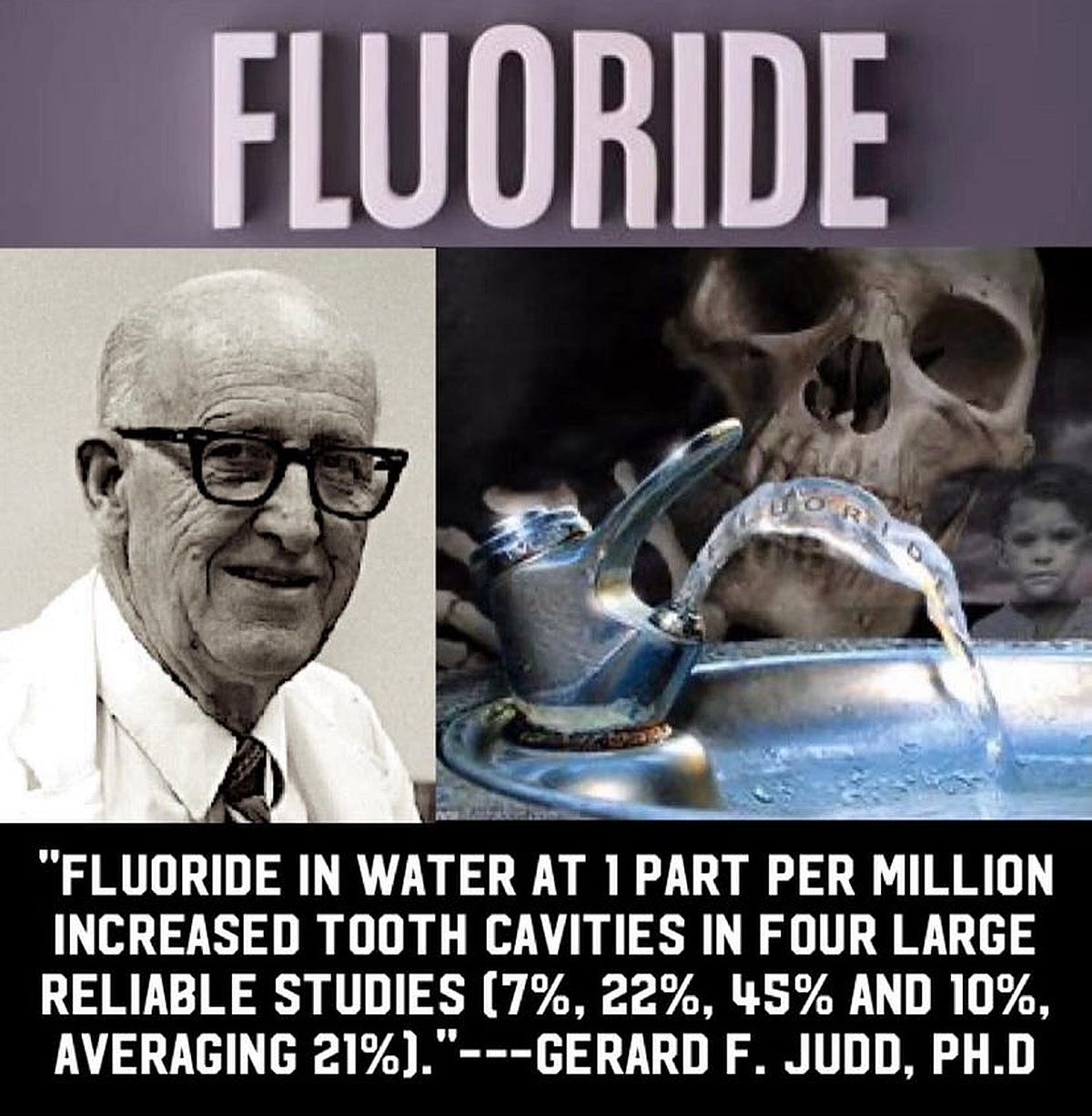 Fluorid im Wasser in einer Konzentration von 1 Teil pro Million führte in vier grossen, zuverlässigen Studien zu einem Anstieg der Karies (7 %, 22 %, 45 % und 10 %, im Durchschnitt 21 %).
