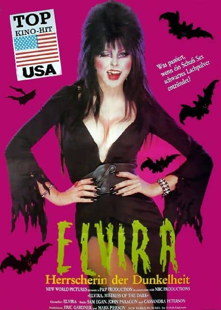 Heute Abend gibts zur Abwechslung mal ein Special hier in der Gruft: Per Zufall habe ich bei Youtube die komplette amerikanische Horrorkomödie des Regisseurs James Signorelli «Elvira – Herrscherin der Dunkelheit» aus dem Jahre 1988 gefunden und muss diesen Trash Kult Movie selbstverständlich hier rein stellen! Heute muss ich ja zugeben, dass mich Elvira ein wenig an Cher erinnert – oder umgekehrt, wie auch immer, jetzt geht es um die Abenteuer der extravaganten Fernsehmoderatorin Elvira beim Kampf um eine Erbschaft in einer kleinbürgerlichen amerikanischen Provinzstadt! Viel Spass!