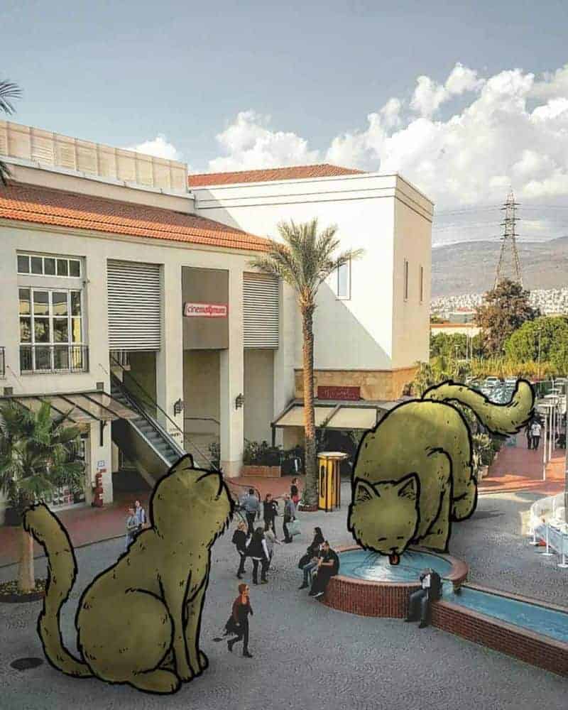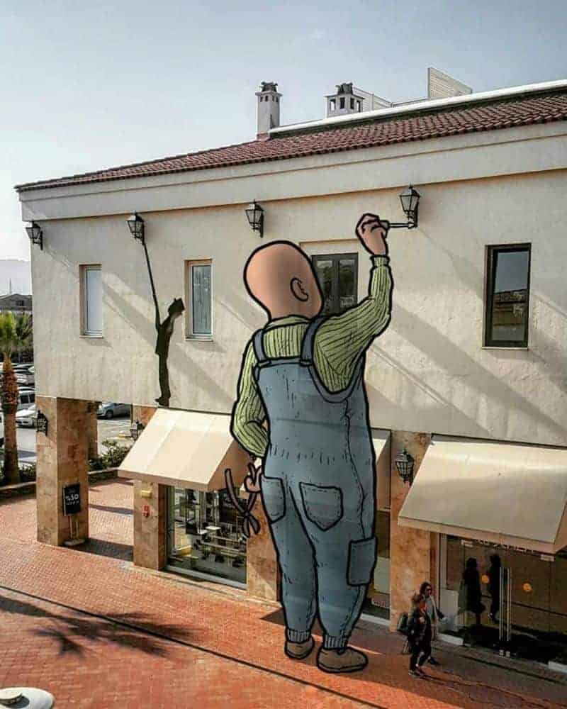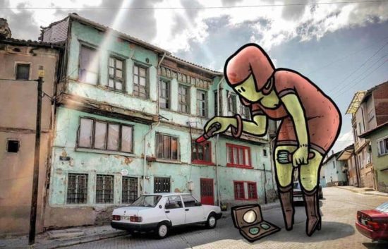 I started to draw big characters on street photos I took with my smartphone, named ‚Lilliputs series‘. The name comes from the novel ‚Gulliver’s Travels‘, the city of dwarfs. Here, we, real people, become dwarfs. Some of them are kind of monsters, some of them are influenced from real people and the others are a bit humorous. They are from different urban areas I visited in Turkey.
