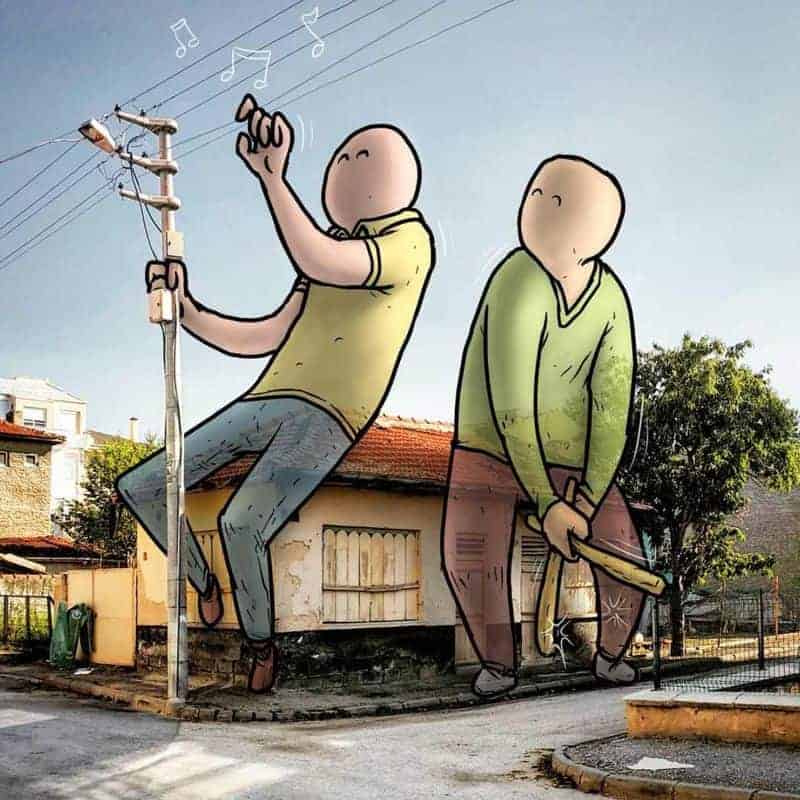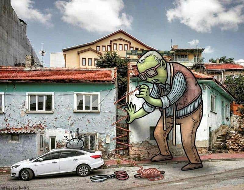 Der Architekt und Illustrator Hakan Keleş aus der Türkei verbindet gekonnt die beiden Tätigkeitsfelder für seine fortlaufenden Reihe, die türkische Grossstädte mit übergrossen Einwohnern zeigen. Riesen, die es sich im urbanen Umfeld gemütlich machen. Immer wieder unterhaltsam und schön anzuschauen, solche gelungenen Verbindungen aus realer und Fantasiewelt. Weitere originelle Giganten-Zeichnungen gibt es auf Instagram zu sehen
