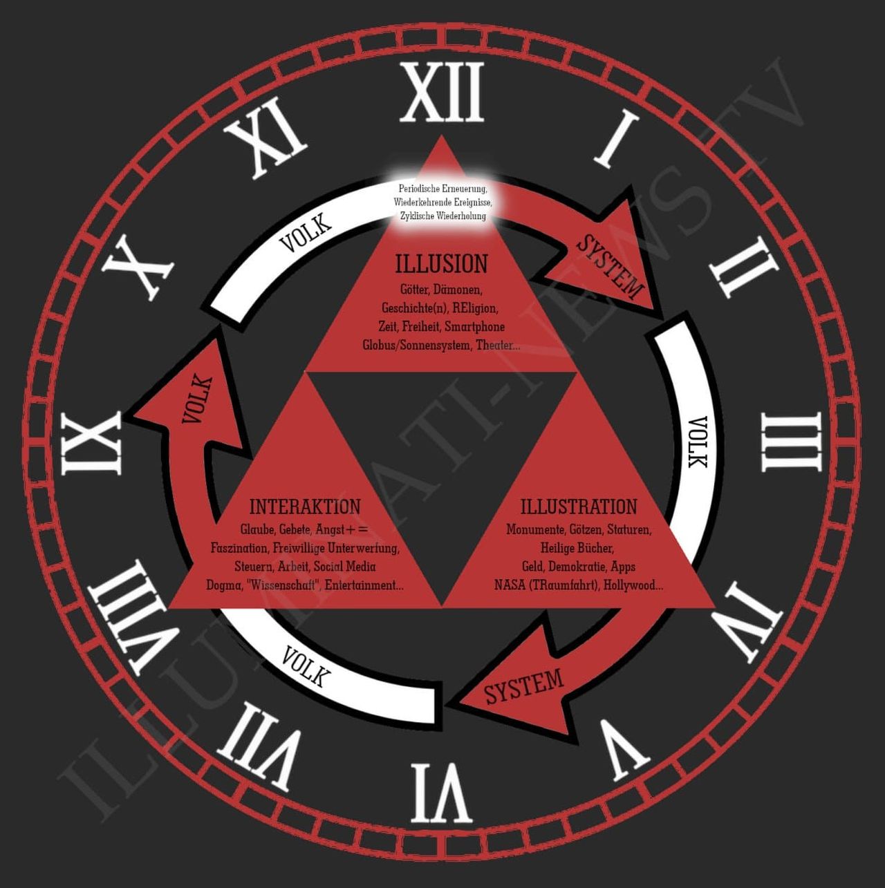 DREIKLANG Grafik (Grund-Funktionsweise aller REgierungsformen), Religionsformen, Unterhaltung, «SMART» Gesellschaft, Klimamärchen, Künstliche Intelligenz, Zeit…