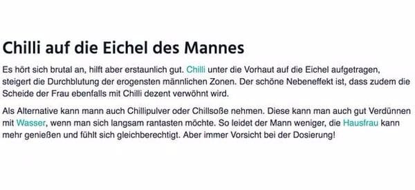 Autschn! Ich wäre im Leben niemals nie auf eine solche Idee gekommen und dachte erst, das sei so ein Quatschdingens, aber die meinen das offensichtlich wirklich ernst. Wer sich in der Partnerschaft also mal «dezent verwöhnen» möchte, bitte schön! Allein die Vorstellung tut schon weh…