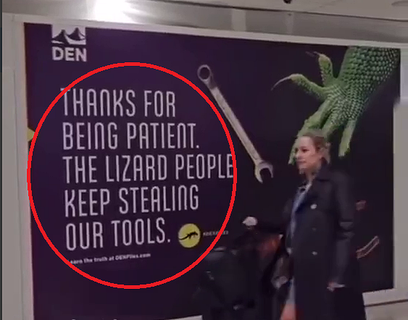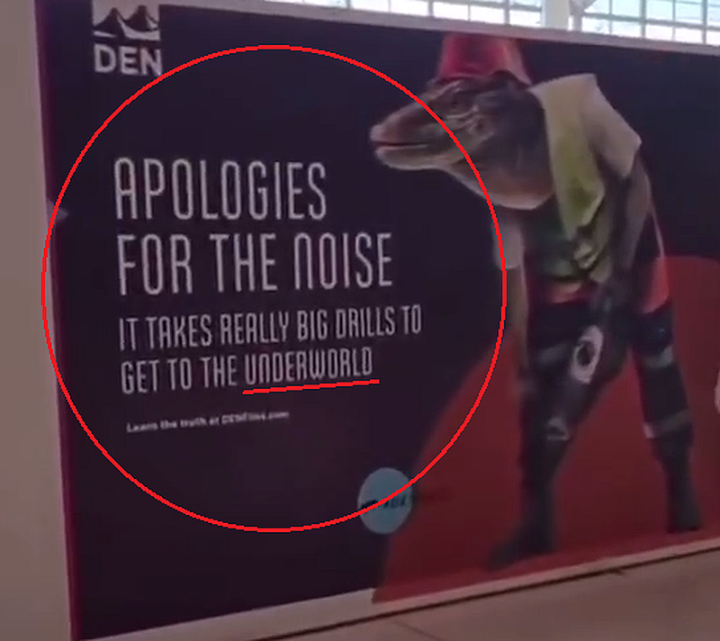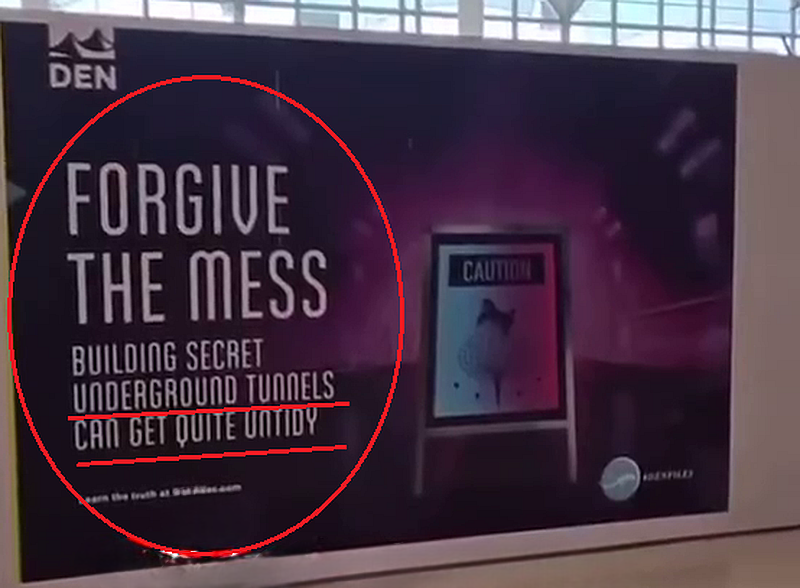 Zu sehen am Internationalen Flughafen in Denver. Man nennt es «Verschleierung» oder «Irreführung». Es geht darum, sensible oder persönliche Informationen zu verbergen, indem man sie auf scheinbar humorvolle oder sarkastische Weise präsentiert, so dass sie für diejenigen, die in die wahre Bedeutung nicht eingeweiht sind, weniger offensichtlich sind. Diese Technik beruht auf der Annahme, dass die Leute die Aussage als Witz interpretieren werden, anstatt sie als Enthüllung der tatsächlichen Fakten zu erkennen.