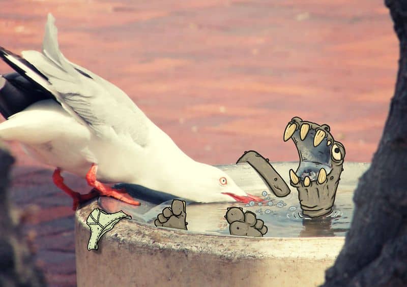 Tail Jar aka Jasper StAubyn West wollte eigentlich nur sein iPad Pro mit dem Apple Pencil ausprobieren und begann einfach zu skizzieren. Dazu nutzte er Fotos von Alltagssituationen und platzierte in diesen seine Monster. So kreierte er eine grossartige Mischung aus Foto-Cartoon, welche er auf Instagram veröffentlichte…