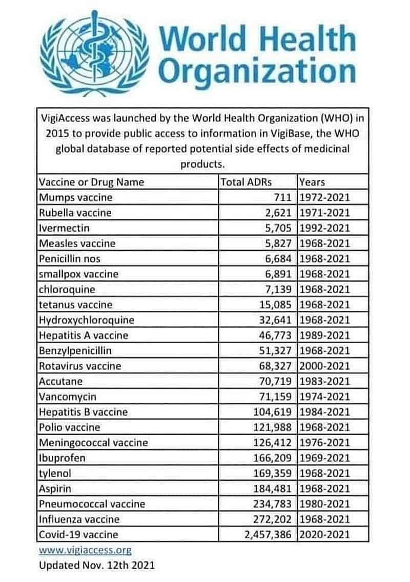 Auch stellt sich die Frage, wie kann es sein, dass Deutschland nach dem ganzen Hick Hack der letzten 2 Jahre jetzt mehr Neuinfektionen pro Tag hat, als ganz Südamerika, Afrika und Indien zusammen? Alle Experten, die von den Medien verunglimpft und ausgeschlossen wurden, haben genau dies Prophezeit und hatten somit ganz klar Recht! Es wurde durch das piksen schlimmer. Drosten, Lauterbach und Co. haben ihre Mitmenschen schlicht und ergreifend angelogen. Selbst die WHO bestätigt offiziell, die Covid-Impfung ist gefährlich wie keine andere! Wie die Weltgesundheitsorganisation zu den Nebenwirkungen von Vakzinen und Medikamenten verdeutlicht, scheinen die experimentellen Covid-Impfstoffe so gefährlich zu sein wie keine andere. Das darf nicht verheimlicht werden! Doch Politik und Mainstreammedien interessiert das nicht, denn diese Fakten widersprechen dem gängigen Narrativ, wonach diese experimentellen Impfstoffe ja “sicher” seien.