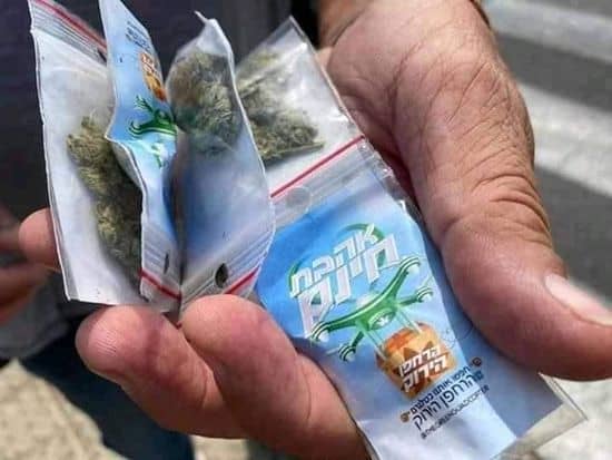 Eine Drohne, die über Tel Aviv flog, hat Hunderte von kleinen Säckchen mit Marihuana fallen lassen, die meisten fielen auf den Rabin-Platz. Von überall eilten Menschen vor Ort herbei, um die Cannabis enthaltenden Tüten aufzuheben, welche mit einem Etikett beklebt waren, auf dem «Freie Liebe» in einem grünen Herzen stand…