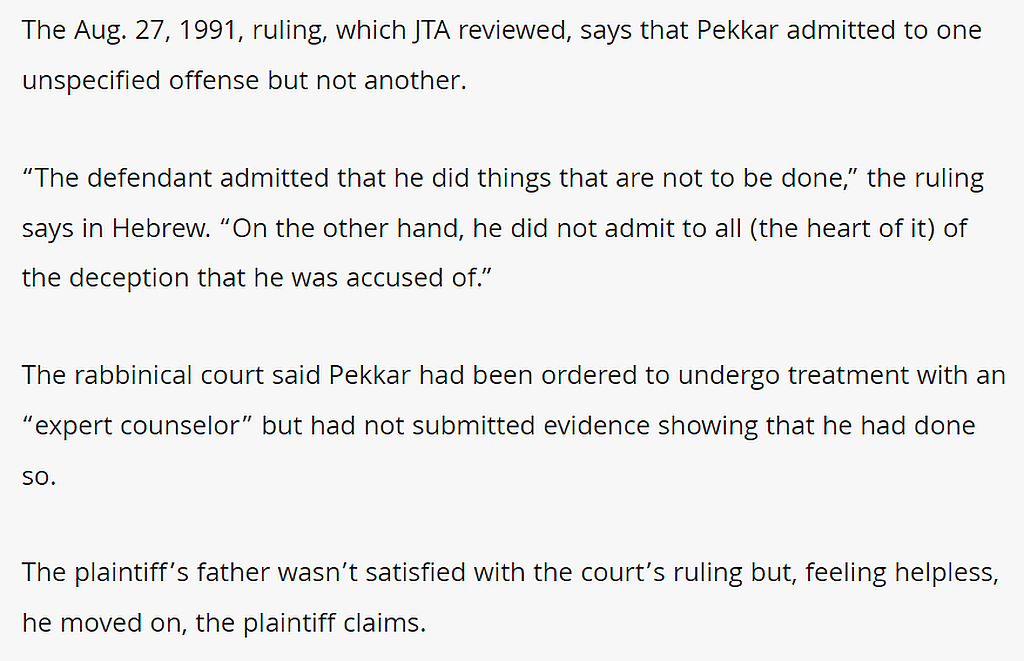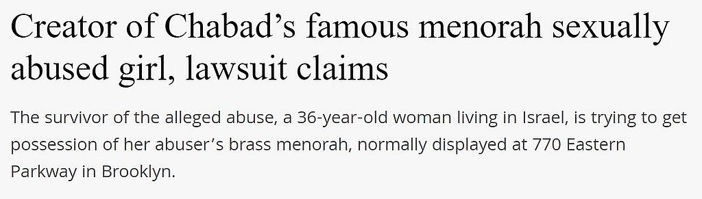 Die jüdische Chabad-Bewegung, die in New York Tunnel mit einer winzigen schmutzigen Matratze und einem Hochstuhl grub, wird seit langem mit sexuellem Kindesmissbrauch in Verbindung gebracht Hirschel Pekkar, eines ihrer prominentesten Mitglieder, gab 1991 zu, einem fünfjährigen Mädchen «Dinge angetan zu haben, die nicht getan werden sollten»…
