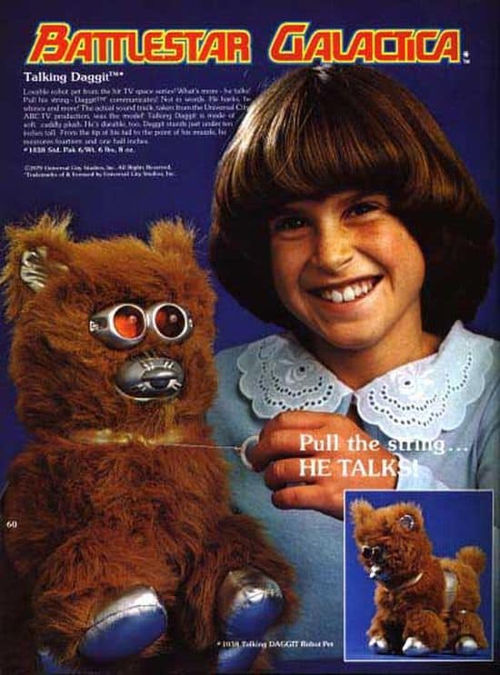 Gerade bin ich über diese Anzeige einer Spielzeugausgabe des Roboter-Hundes aus dem Kampfstern Galactica Film aus den 70ern gestolpert und auf einmal waren die Erinnerungen alle wieder da. „Kampfstern Galactica“ habe ich noch vor Star Wars im Fernsehen gesehen, damals, als kleiner Bub.