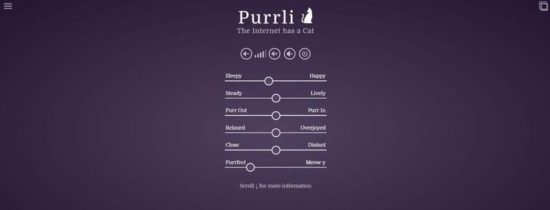 Nicht jeder Mensch kann in seiner Wohnung einen Stubentiger halten, sonst gäbe es beispielsweise in Japan nicht schon seit längerer Zeit auch Katzen-Cafés, sogenannte «Neko-Café». In diesen Lokalitäten können Menschen nicht nur Kaffee trinken, sondern auch mit ein paar Vierbeinern spielen. Für alle, die sich trotzdem nicht entspannen können, gibt es jetzt eine interaktive Katzenschnurr-Webseite: Purrli.com macht genau das, wonach sich der gestresste Mensch sehnt: Schnurren, solange es geht! Die Seite ermöglicht es dem Katzenliebhaber, sein ganz individuelles Lieblingsschnurren über verschiedene Regler einzustellen. So kann man, wenn man noch mehr Energie braucht, die «Happy»- oder «Overjoyed»-Einstellungen ausprobieren, bei denen das Schnurrtempo glücklicher Katzen simuliert wird. Wem das nicht genug ist, kann sich zusätzlich einige «Miau»-Intervalle nach vordefiniertem Rhythmus einspielen lassen. Wenn es noch entspannter zu- und hergehen soll, freuen sich Katzenliebhaber mit den «Sleepy»- und «Relaxed»-Settings sicher über etwas ruhigere Klänge. Echte Katzen scheint das ganze Computerschnurren übrigens eher zu irritieren…