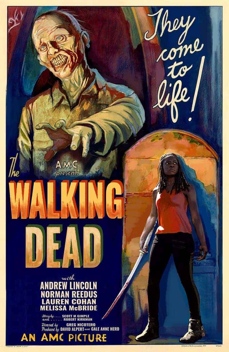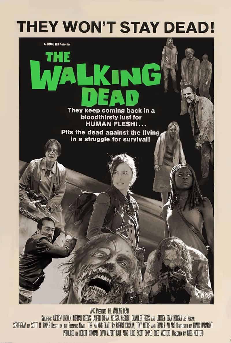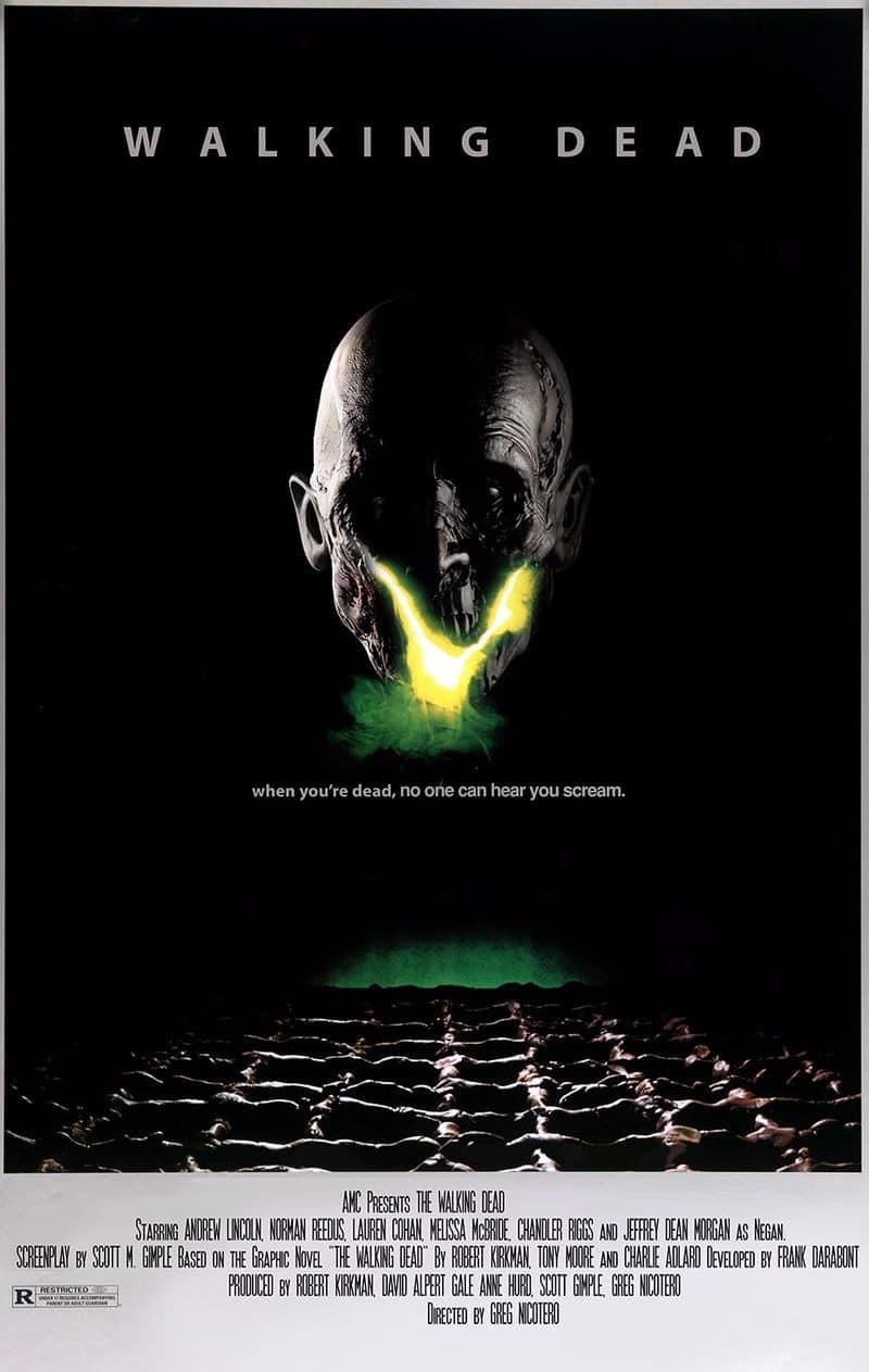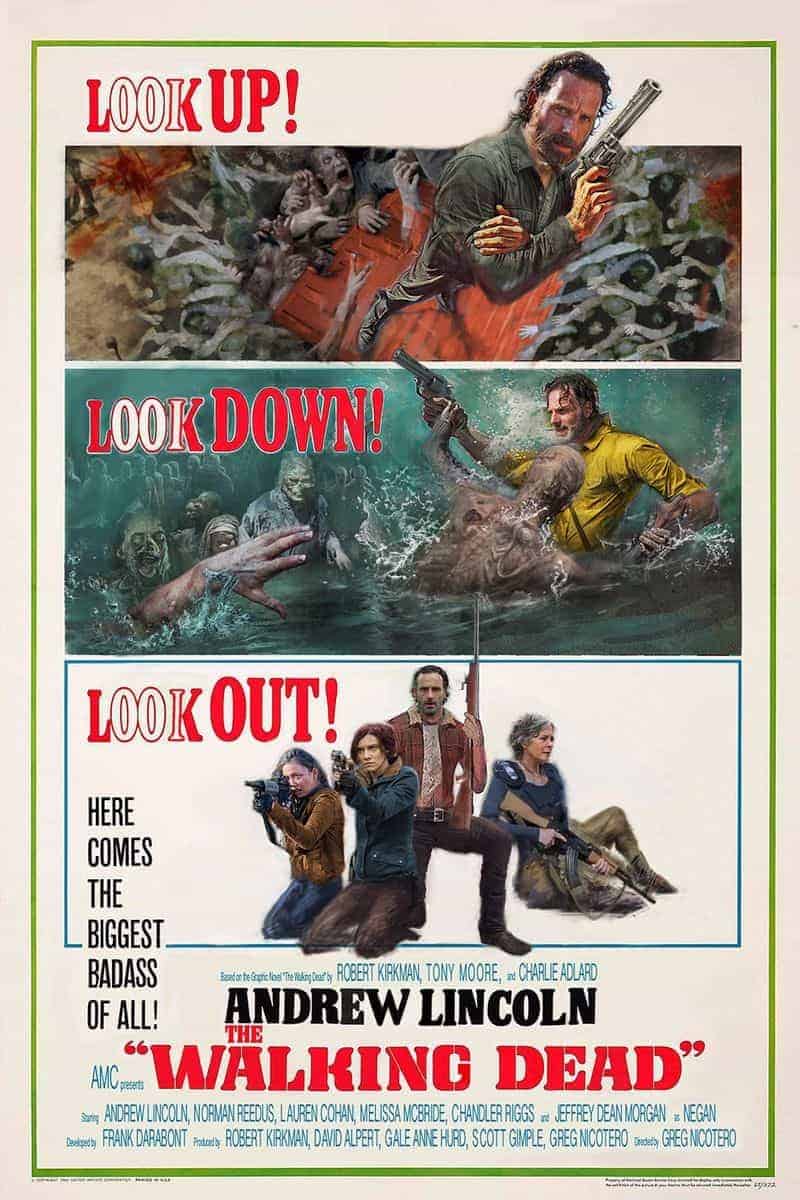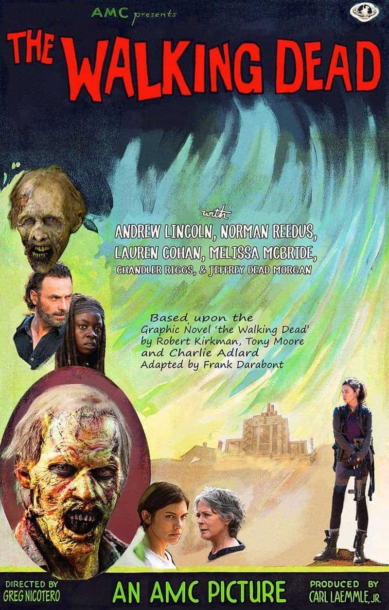 Ich mag klassische Poster, wie man sie in den 50ern bis in die 80er hinein produzierte – ein wenig trashig und auf jeden Fall plakativ. Solche klassischen Movieposter wurden vom Producer, Director und Effects Guy Greg Nicotero zusammen mit seinen Teamkollegen Michael Broom und John Wheaton im Walking Dead Design umgesetzt. Wundervolle Poster. Schön im Style von Indiana Jones bis zu kultigen Horrorfilmen. Greg hat da ganze Arbeit geleistet und auf Instagram veröffentlicht.