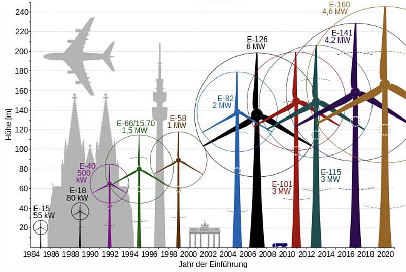 Im Lauf der letzten Jahre wurden die Windkraftanlagen immer grösser. Übrigens haben Bäume einen wesentlichen Anteil bei der Entstehung von Regen. Bäume weg, Regen weg und dann ist wieder der Klimawandel daran schuld! Ach ja und in Ecuador steht bald kein Baum mehr, weil das Holz für die Windräder benötigt wird. Ein weiterer Teilaspekt und davon gibt es noch sehr viele, die hier noch nicht angesprochen wurden.