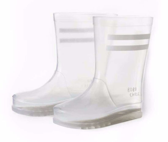 Wenn man mit diesen transparenten Regenstiefeln zwei unterschiedliche Socken trägt, passt das. Gibt es bei Bobo für 39 €…