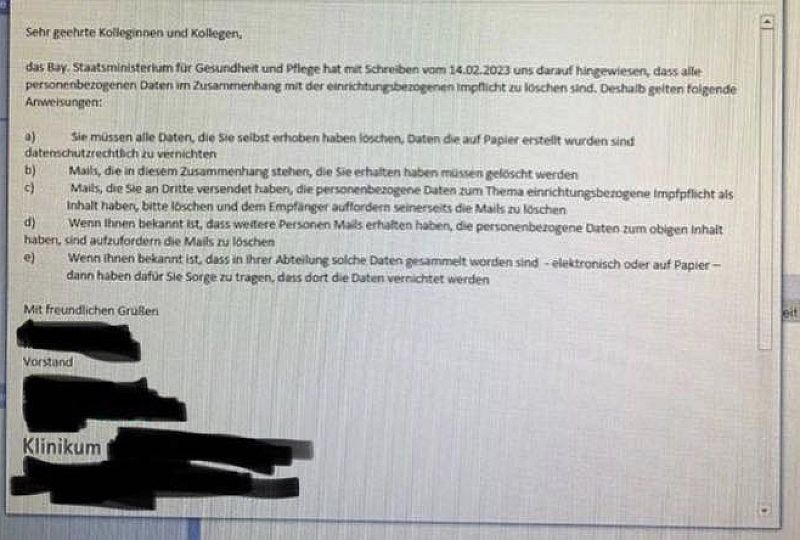 Nun denn, schauen wir mal, wie lange diese technischen Probleme dauern und ob der ursprüngliche Zustand je wieder hergestellt wird. Um Ausreden ist man ja offensichtlich nie verlegen… und unsere «Qualitätsmedien» scheint investigativer Journalismus eh nicht (mehr) zu interessieren. Spannend ist auch, dass Ämter und Behörden offensichtlich Weisung rausgeben, dass «personenbezogene Daten im Zusammenhang mit der einrichtungsbezogenen Impfpflicht zu löschen sind». Passt doch alles zusammen…