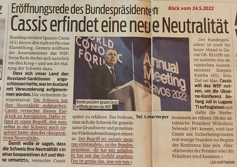 Wieso heisst es point de presse und nicht point depressed? Anlässlich seiner gestrigen Eröffnungsrede am WEF erfand Bundespräsident Ignazio Cassis mit der «kooperativen Neutralität» eine neue Art Neutralität. Der Begriff sei ihm «relativ spontan» eingefallen, meinte Cassis dazu und fügte an, dass der neue Begriff ihm gefalle und ein gutes Gefühl gebe. Ich bin der Meinung, dass dies nur ein Versprecher war, er wollte doch bestimmt «korrupte Neutralität» sagen, oder? Wie auch immer, die Frage ist nun, ob auch die Rest der Schweiz ein gutes Gefühl bei dieser «korrupten Neutralität» entwickeln kann…