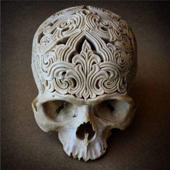 Wie die Künstlerin Künstler Rachel Lee für dieses Projekt zu einem menschlichen Schädel in einem guten Zustand gekommen ist, erklärt sie uns nicht. Aber diesen kunstvoll geschnitzten Schädel kann man für 2200 $ erwerben, um damit den Empfangsbereich des Büros oder die Junggesellenbude zu schmücken. Doch dies ist nur einer von vielen geschnitzten Schädel, die Rachel verkauft – meistens handelt es sich dabei aber um Schädel von Tieren, zu bewundern auf ihrem Instagram-Feed…