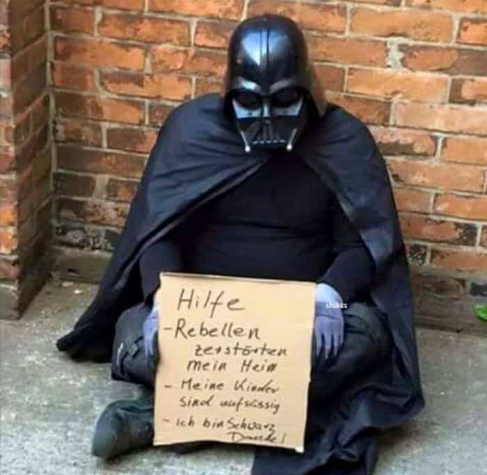 Auch schon früher haben wir immer wieder gefragt: «Was macht eigentlich Darth Vader?» So hatten wir schon ganz persönliche Fotos von ihm hier oder sahen ihn auf einem Einrad Dudelsack spielend, bei in den Güldenen Bögen, auf der Strasse, beim Laden seines Laserschwerts, beim Spielen, beim «Gedankensammeln«, im Wasser, bei einem Banküberfall und beim Säbelrasseln. Und nun ist es soweit gekommen?