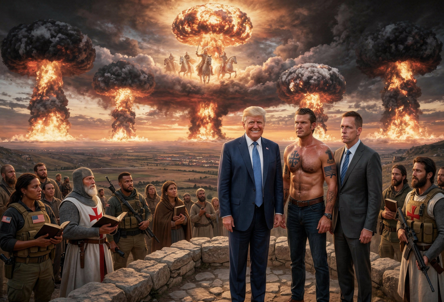 Im öffentlichen Briefing nannte Hegseth Iran ein Land «besessener religiöser Fanatiker» mit «prophetischen islamischen Wahnvorstellungen» — während gleichzeitig US-Militärkommandeure ihren Truppen erklärten, der Krieg sei ein biblischer Schritt in Richtung Armageddon. Die Ironie ist mit dem Skalpell nicht herauszuoperieren.