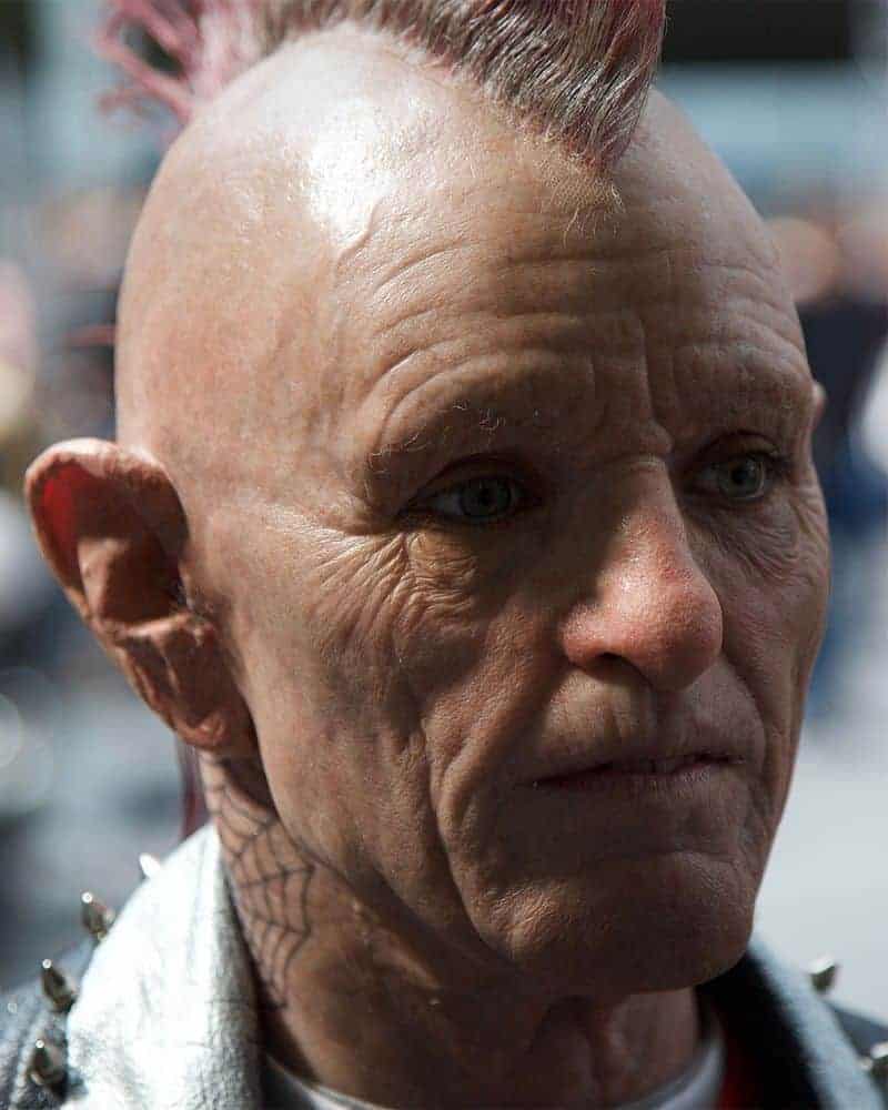Freunde, falls ihr das nächste Mal in ein Gespräch mit einem alten Punk verwickelt sein solltet, schaut ihn euch zweimal an! Denn ihr könntet genauso gut ein Gespräch mit einer schönen jungen Frau geführt haben, die unter seiner Haut verborgen ist. Der Maskenbildner Neill Gorton hat den Transformationsprozess, wie er ein junges Mädchen in einen alten Punk verwandelt, Schritt für Schritt festgehalten. Gemacht hat er das am International Makeup Artists Trade Show (IMATS) in London um seine Schule «Neill Gorton Prosthetics Studio» zu fördern. So wird Modell Kelsey-Leigh Walker in folgendem Clip zu einer völlig anderen Person, de Perücke wurde von Andrew Whiteoak erstellt. Beängstigend und zugleich eindrucksvoll was heute mit Make-Up alles möglich ist…