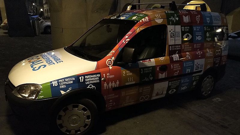 Damit man nun die Menschen weiter manipulieren kann, würde das Signet der Agenda2030 bereits am Bahnhof Bern ausgehängt oder ans Bundeshaus projiziert. Nun hat man auch das passende Auto dazu, dieses steht in der Berner Altstadt – Infos zur Ausleihe kriegt man bei der Berner Staatskanzlei…