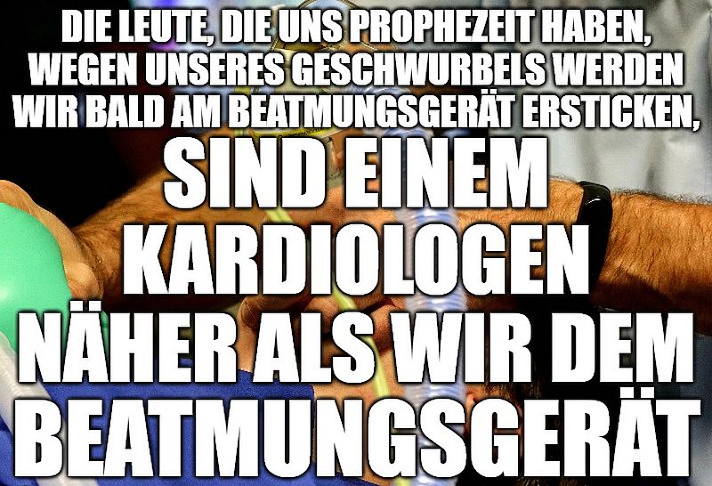 Die Leute, die uns prophezeit haben, wegen unseres Geschwurbels werden wir bald am Beatmungsgerät ersticken, sind einem Kardiologen näher als wir dem Beatmungsgerät.