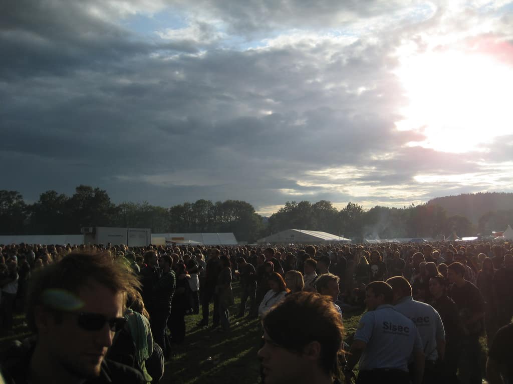 Wir nährten uns langsam wieder der Blechschlange, welche bereits kilometerweit vor der Ausfahrt angefangen hatte, nur rollten wir erst bei Jonschwil, kurz vor dem Degenaupark in die Blechlawine und so sind wir auf 1830 endlich auf dem Parkgelände angekommen. Die ganze Einweisung klappte eigentlich ohne Probleme, so dass man nicht die Organisation des Open Airs für den Stau verantwortlich machen konnte, sondern Metallica verursachte schlicht und ergreifend einen Verkehrkollaps in der Ostschweiz. Egal, wir sind ja dabei doch recht gut weg, resp angekommen.