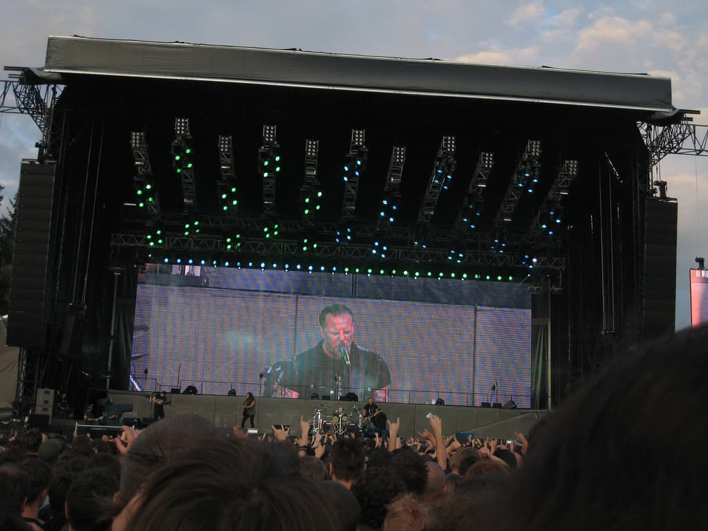 Metallica hat in den beinahe 25 Jahren ihres Bestehens bereits über 100 Millionen Tonträger verkauft. Keine Band hat den Heavy Metal derart stark geprägt wie Metallica und gleichzeitig ein Massenpublikum ansprechen können. Wie man auch am gestrigen Sonntag dem Publikum ansehen konnte. Niemals hätte ich vor knapp 20 Jahren, als ich die Jungs zum ersten Mal in der Festhalle Bern gesehen habe, gedacht, dass diese Band jemals solche Massen ansprechen würde, aber sei’s drum. Die Vorband Mnemic hatten wir dank des Staus verpasst und das Gejodel der Frontfrau Sharon Janny den Adel und den Symphonic Metal von Within Temptation musste keiner von uns haben. Daher erstmal zielstrebig zum Bier Getränke-Stand gestochen, es ist ja schliesslich wichtig, sich ausreichend mit Flüssigkeit zu versorgen. So schnappte man sich pro Nase 3 Bierchen – man will ja den Tag nicht nur mit anstehen verbringen – und pflanzte sich mal auf den Boden, wartend, dass sich jemand der armen, lauthals jammernden Frau auf der Bühne erbarmen und sie vom qualvollen Bühnenleid befreien möge. Endlich fand die geschundene Frau um circa sieben Uhr Erlösung und unser Gehör war frei für metaloide, thrashige Klänge!