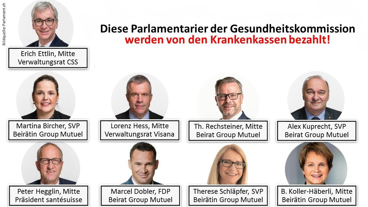 Wie sollen die Krankenkassen-Prämien sinken, wenn sich ein grosser Teil der Parlamentarier in der Gesundheitskommission von den Krankenkassen bezahlen lässt? Es wird höchste Zeit, diese Lobbyisten abzuwählen!