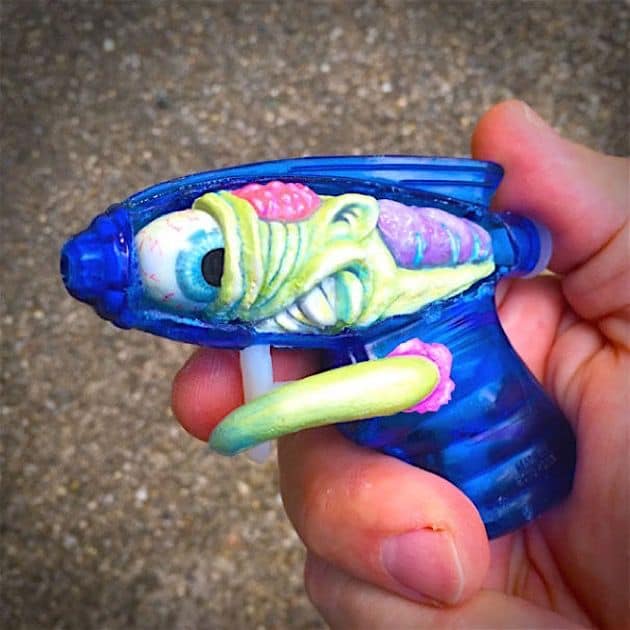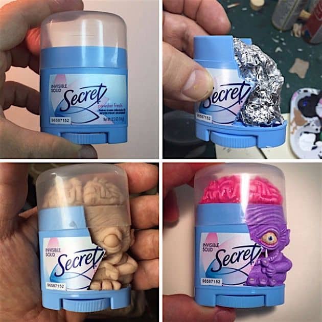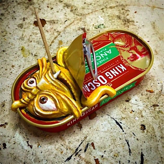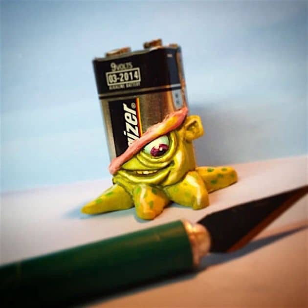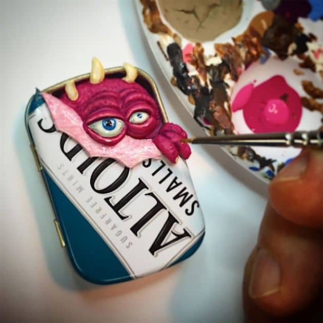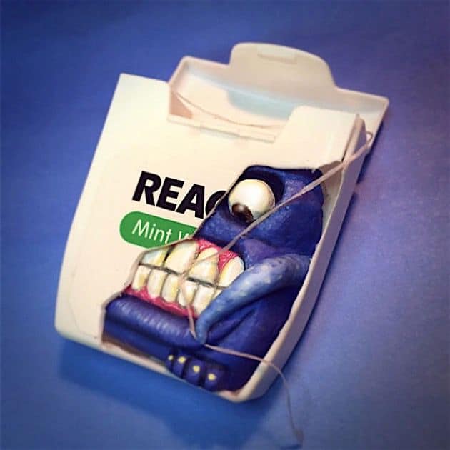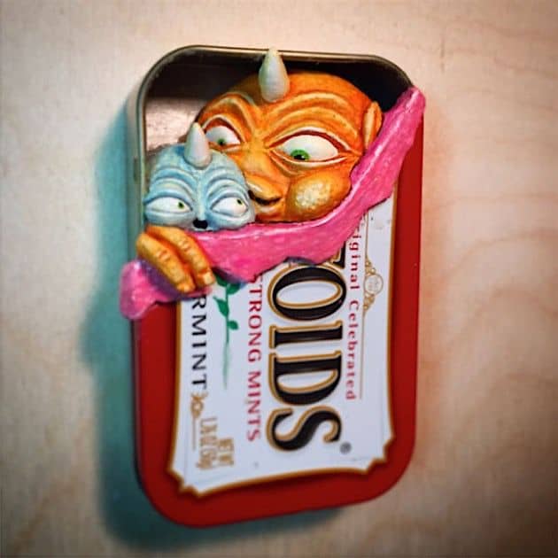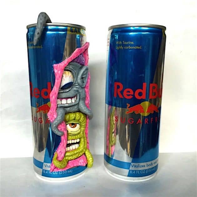 Mir will ja keiner glauben, Steve Casino macht es aber endlich sichtbar: Monster stecken überall! Dass es sich dabei um eine richtige Invasion handelt, merkt man, wenn man seine irrwitzigen Mini-Skulpturen betrachtet. Der fingerfertige Künstler integriert faszinierend detaillierte Charaktere in Dinge, die er im Müll findet. Da manifestiert sich ein pinkhirniger Alien in einem aufgebrauchten Deoroller, und eine leere Red-Bull-Dose entpuppt sich als Versteck für ein glitschiges Monster-Pärchen. Cooler Typ mit einer tollen Fantasie!