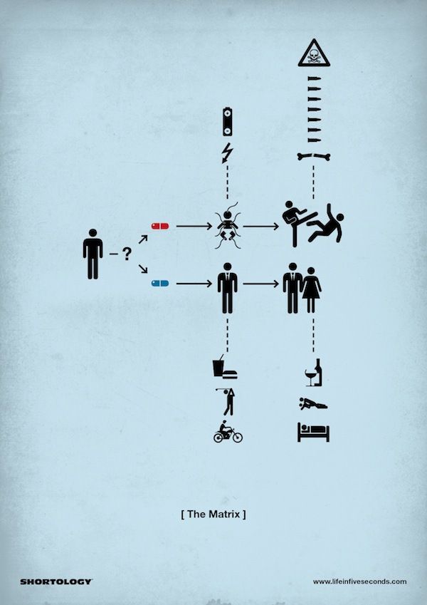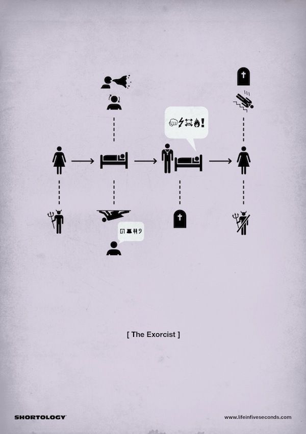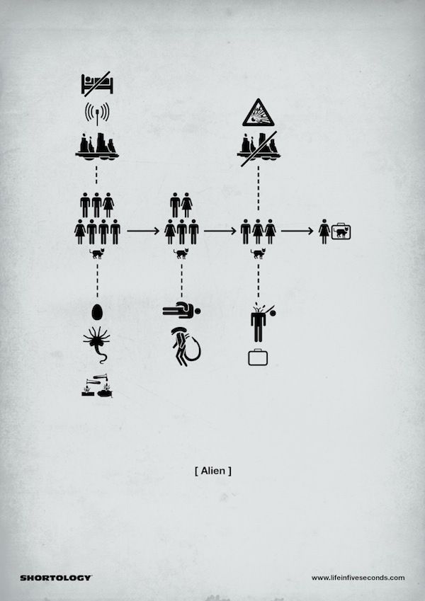 Diese Piktogramme alter Filme sollten eigentlich nicht zuviel über die Handlung verraten, ausser man hat unter einem Stein gelebt. Matteo Civaschi vom «H-57 Creative Studio» erstellte diese Grafiken für das Buch «Life in 5 Seconds», ein Buch für Menschen, welche keine Zeit zu verlieren haben…