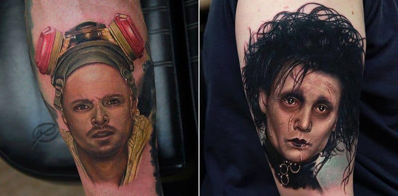 Der Tätowierer Rich Pineda sticht seinen Kunden vorrangig bekannte Gesichter aus Film und Fernsehen unter die Haut. Da sind auch viele Klassiker dabei, wie z.B. The Munsters, The Crow, House of 1000 Corpses, Ghostbusters, Edward Scissorhands, Back to the Future, The Wizard of Oz oder Batman…
