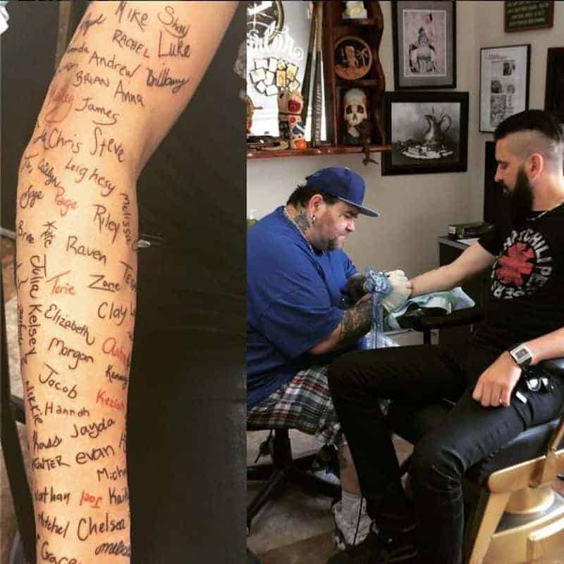 Musiker lässt sich die Namen von Selbstmord-Überlebenden unter seinen Fans tätowieren