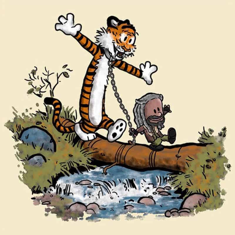 Wo ist Carl!? Wo ist Carl? NICHT dort wo du ihm gesagt hast, das er sein soll, soviel ist verdammt sicher. Das Kind ist genau dort, wo er nicht sein soll – und wo immer die meisten Zombies sind, um genau das tun, was er nicht tun soll, mit genau dem, von dem du ihm gesagt hast, dass er nicht mit ihm gehen soll. In etwa dies sagt das Calvin und Hobbes Mashup von Joel Watson aus…