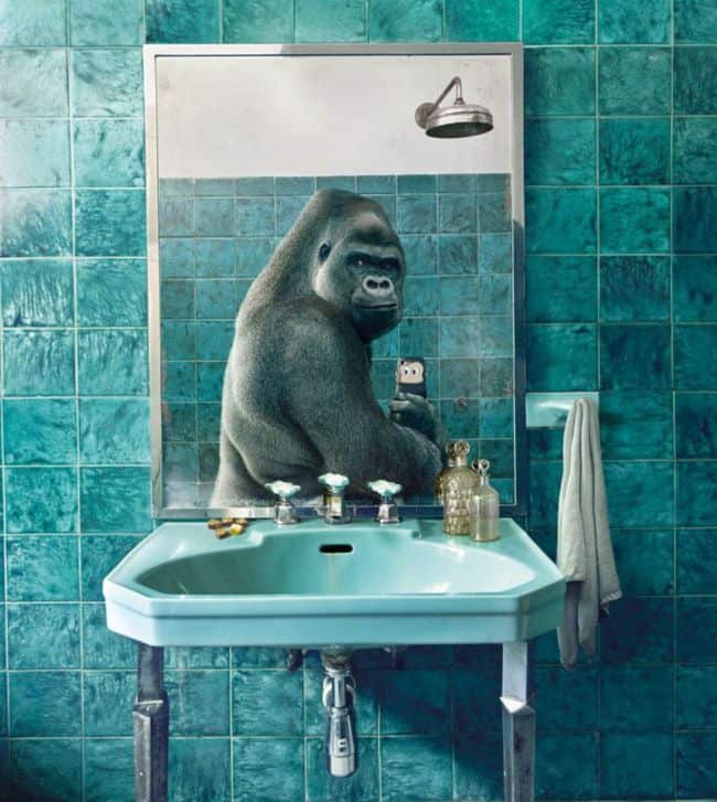 Nicht nur Menschen, sondern auch Tiere machen gerne Selfies, egal ob Eisbär oder Gorilla. Die folgenden Fotos von Silvio Medeiros zeigen lustige Selfies von Tieren im Badezimmern. Diese humorvolle Bildersammlung ist Zusammenarbeit für eine Werbekampagne mit National Geographic entstanden. Mit dieser Kampagne zeigt das Magazin “National Geographic”, einen humorvollen Aspekt zum Thema Selfies.