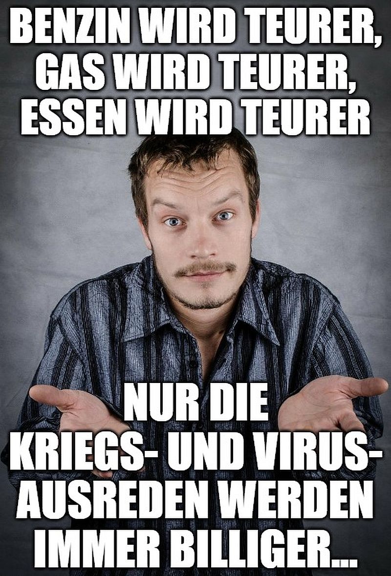 Benzin wird teurer, Gas wird teurer, Essen wird teurer, nur die Kriegs- und Virus-Ausreden werden immer billiger…