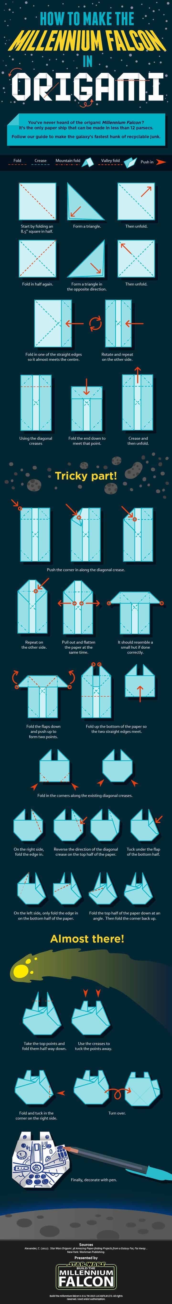 Hier eine einfache Anleitung, wie man easy eine Origami-Version des Millennium Falcon faltet…