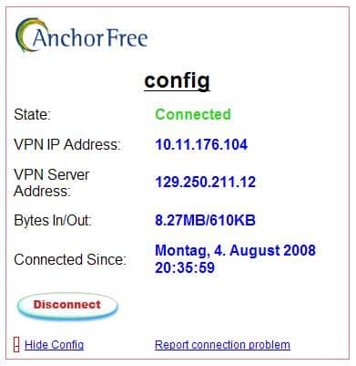 Na gut, sagt man sich da, versuch macht klug, somit das Teil mal runtergebeamt, auf die Platte geknallt und gestartet. Und siehe da, nicht lange rumkonfigurieren oder sonstwas, nein, Browserfenster auf und es starrt mich ne IP aus Amerika an. Das beginnt ja schon mal prima
