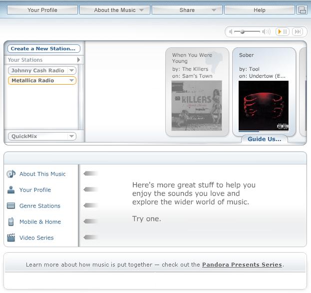 Also heiter, weiter zu meinem Liebling. Hier erstmal der Ladebalken – einen Moment lang wird meine Geduld auf die Probe gestellt – es lädt und lädt und, naja, schon mal besser, als gleich der Hinweis mit dem nicht zugelassenen Zugriff. Nach ca. 1 Minute ist es soweit… Pandora strahlt mich in alter Frische an!!! Yippee yai yeah Mother fuckers! Ich glaubs ja nicht! Und ich musste nicht mal einloggen, dass Teil war sofort wieder mein Freund und da hab ich dann doch ein wenig gestaunt, wie tief sich vermutlich das Teil ins System graben muss, denn Cookies usw. habe ich mittlerweile zig mal gelöscht. Naja, seis drum. Nach wiederholtem Besuch ist übrigens die Ladezeit erfreulich schnell. Freude herrscht!