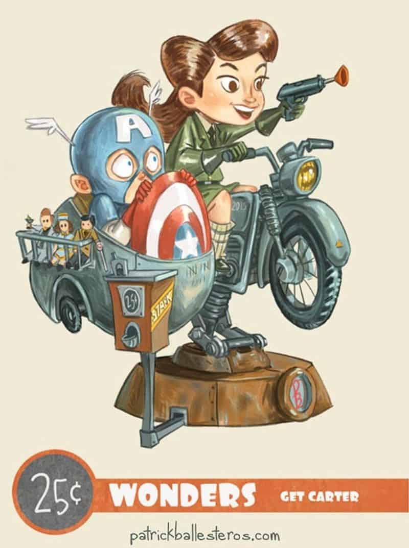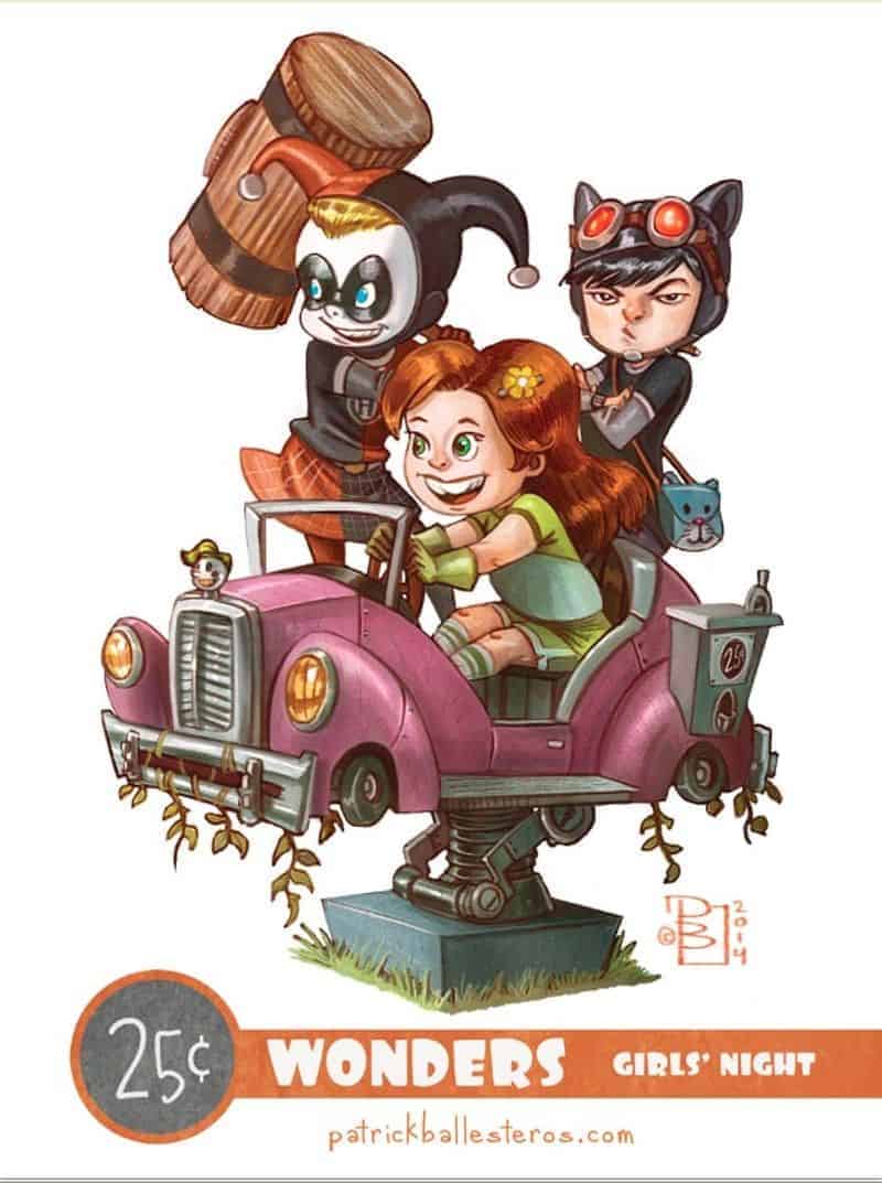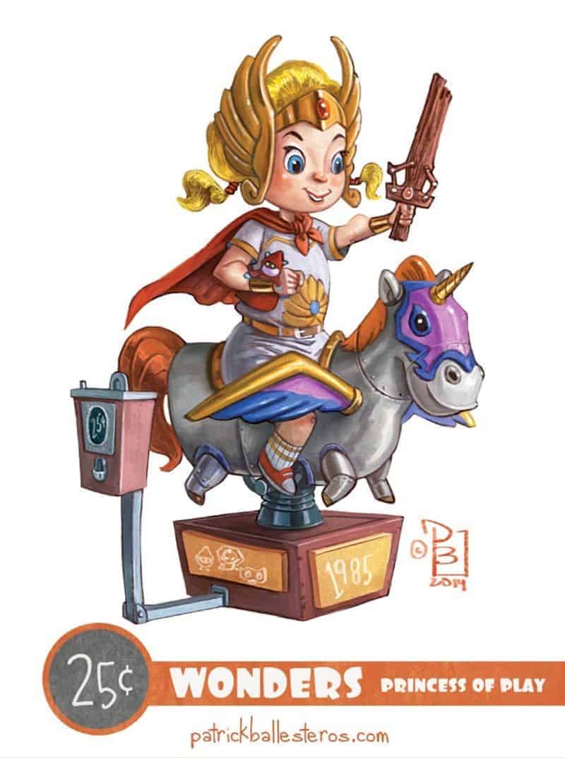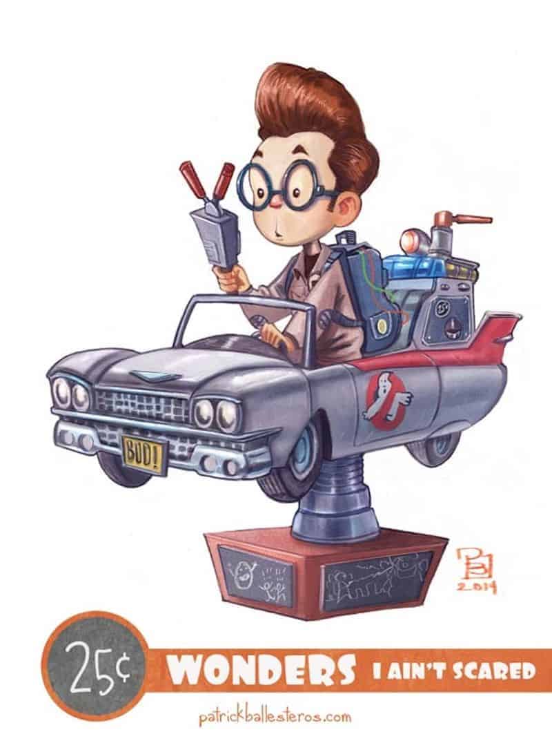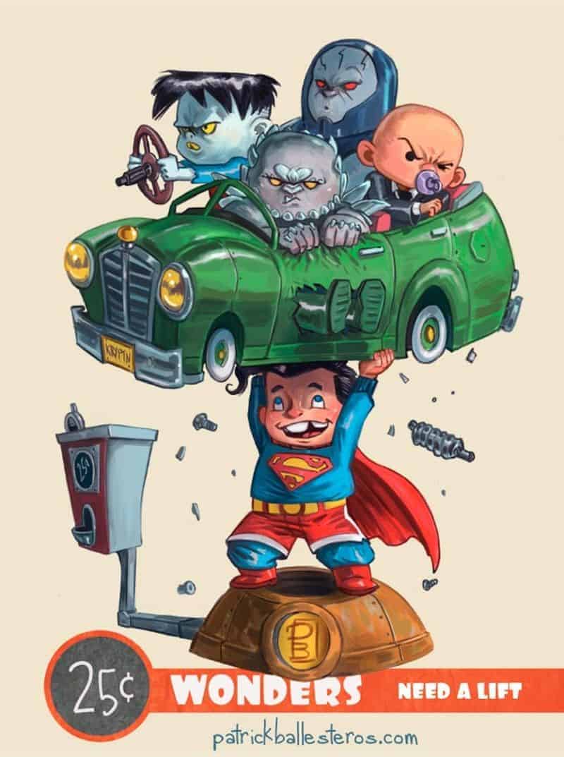 Wer kennt sie nicht, diese Auto-Fahrautomaten vor Supermärkten? Patrick Ballesteros aus Los Angeles schenkt uns einige sehr drollige Varianten. Gezeichnete Fahrgeschäfte mit Popkulturfiguren, die passend zu ihrer Herkunft auf den Gefährten sind. Schön anzuschauen und hier und da mit erfreulich kreativen Kniffen. Mehr von Ballesteros Kunst gibt es auf seiner Website oder auf Instagram…