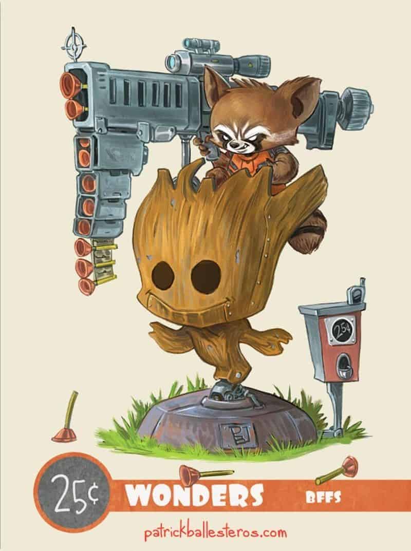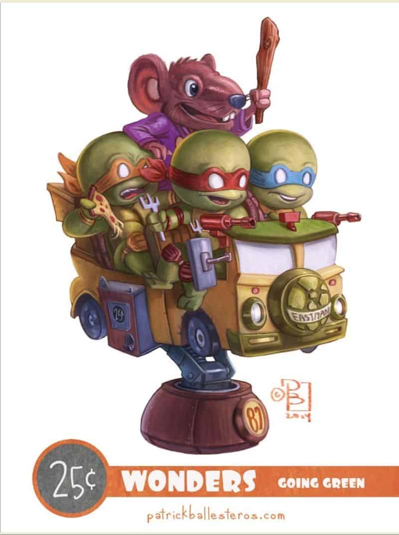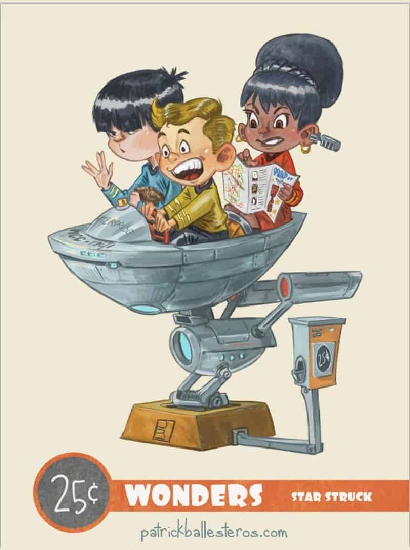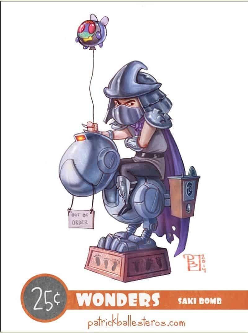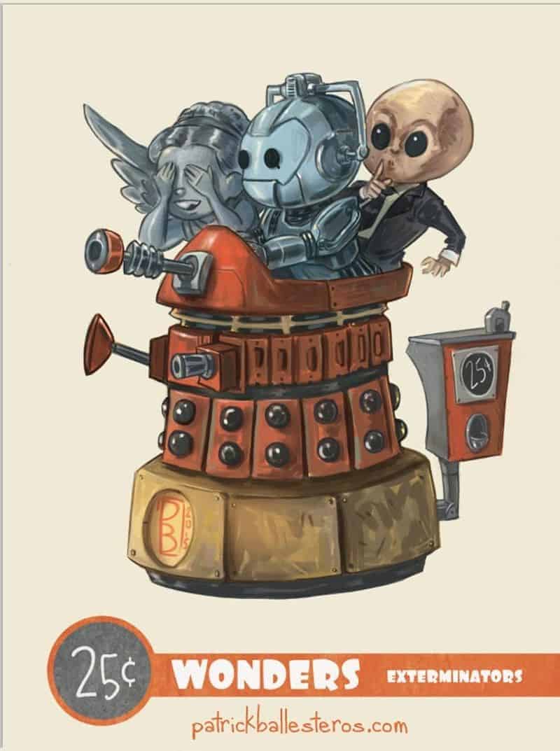 Wer kennt sie nicht, diese Auto-Fahrautomaten vor Supermärkten? Patrick Ballesteros aus Los Angeles schenkt uns einige sehr drollige Varianten. Gezeichnete Fahrgeschäfte mit Popkulturfiguren, die passend zu ihrer Herkunft auf den Gefährten sind. Schön anzuschauen und hier und da mit erfreulich kreativen Kniffen. Mehr von Ballesteros Kunst gibt es auf seiner Website oder auf Instagram…