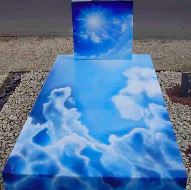 Die französischen Firma Funeral Concept begründet die Notwendigkeit ihrer Arbeit damit, dass Grabsteine ein Bild des Lebens und nicht des Todes abgeben sollten. Mir persönlich sind die Dinger ja deutlich zu bunt, aber jedem das seine, denn über Geschmack lässt sich ja bekanntlich nicht streiten…