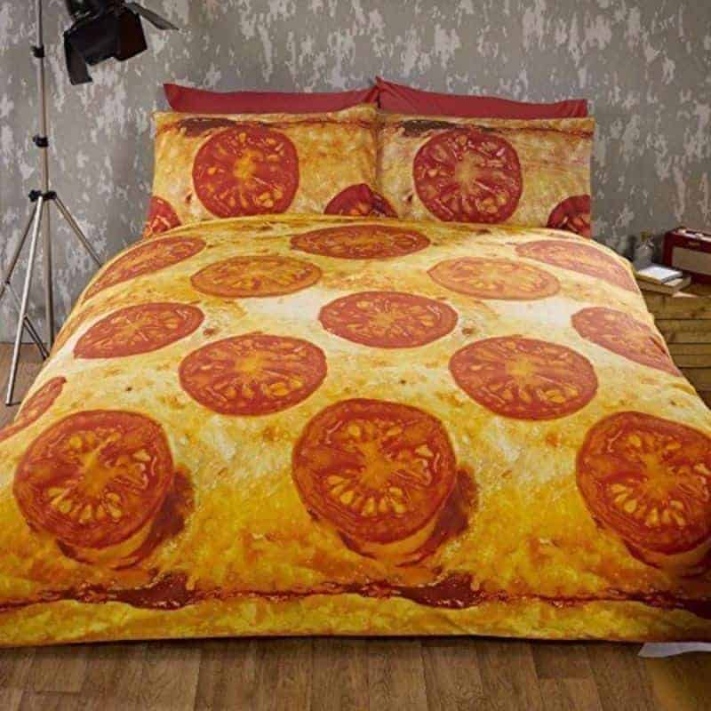 Pizza-Liebhaber schlafen bestimmt hervorragend in diesem Pizza-Bettbezug, der für rund €23 hier zu haben ist…