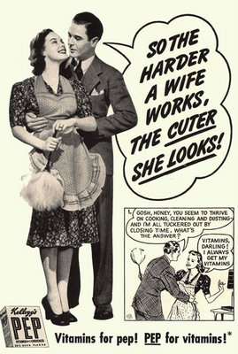 Dreissiger Jahre: Du machst die ganze Hausarbeit – und schaust doch jeden Tag frischer aus, Liebling. Was ist dein Geheimnis? Natürlich eine Schüssel PEP-Vitamingetreide von Kelloggs zum Frühstück.