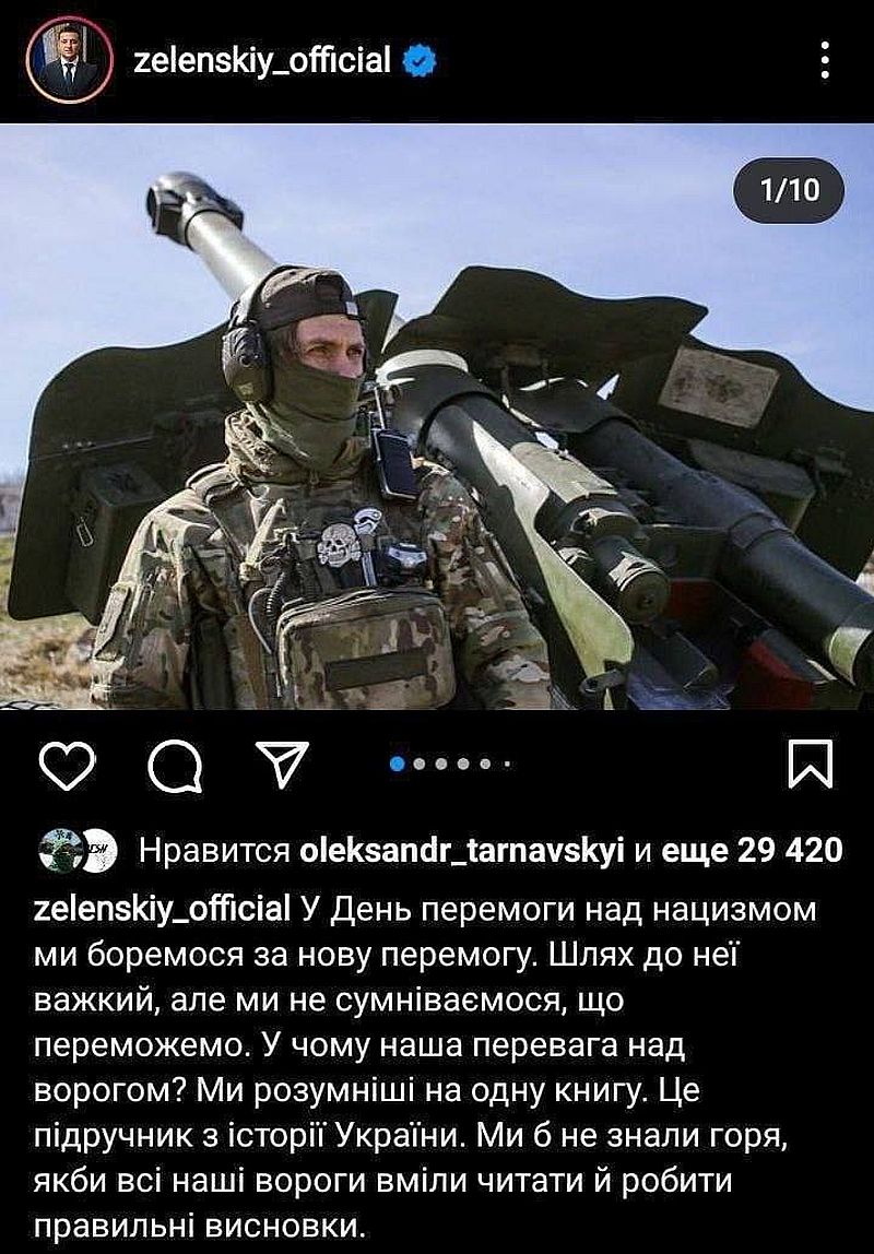 Der ukrainische Präsident Selensky hat zum Tag des Sieges über den Faschismus eine Auswahl von Fotos veröffentlicht, von denen das erste einen ukrainischen Nazi mit dem Chevron der 3. SS-Panzerdivision zeigt. Nach einiger Zeit und entsprechenden Reaktionen wurde übrigens die Veröffentlichung redigiert und das Foto des Soldaten mit den Nazi-Insignien gelöscht…