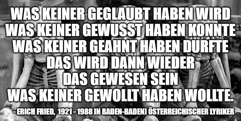 Der Dichter Erich Fried hat ein prophetisches Gedicht für die Pandemie-Hunger-Games geschrieben, deren nächste Aufführung wir jetzt erleben. Es heisst «Dann wieder»: