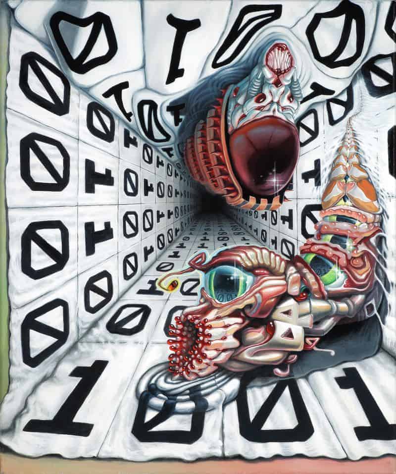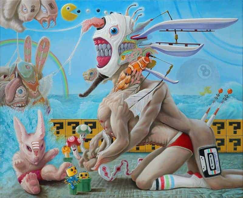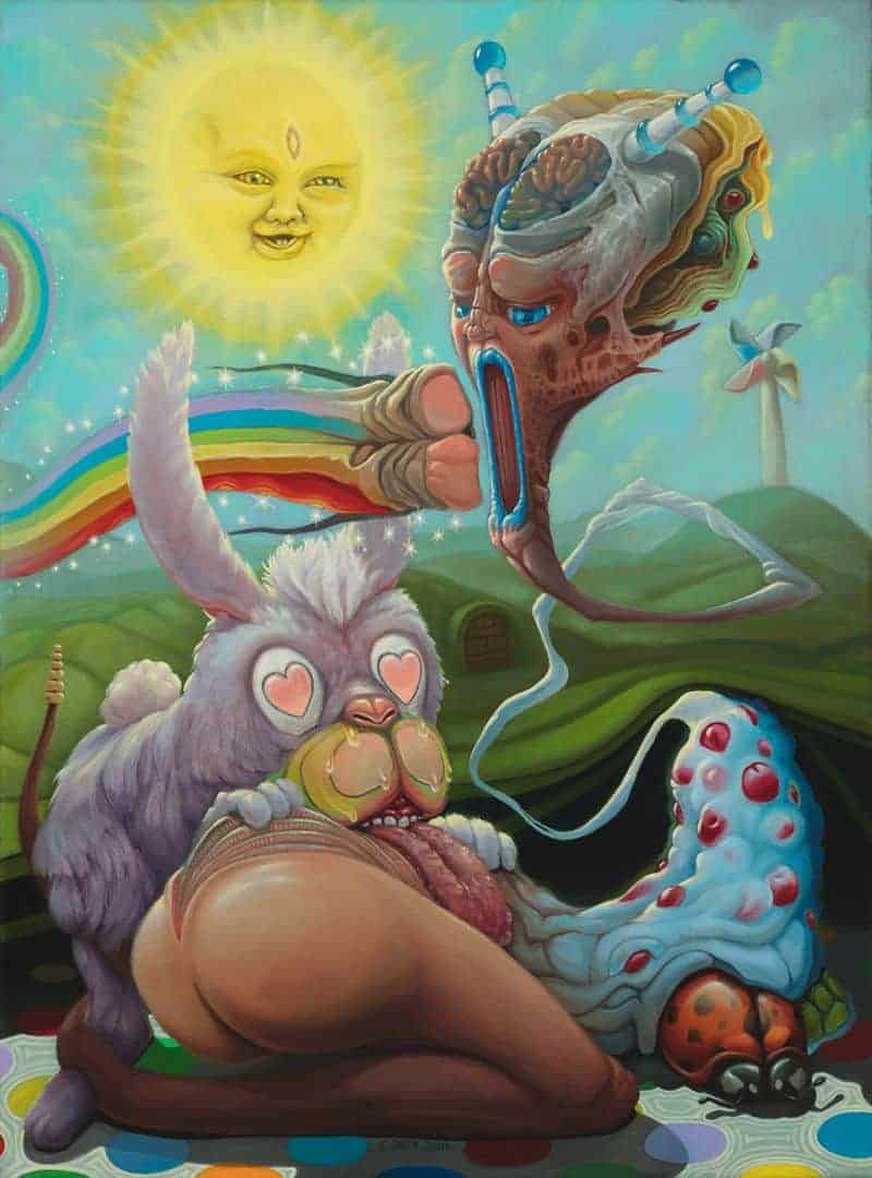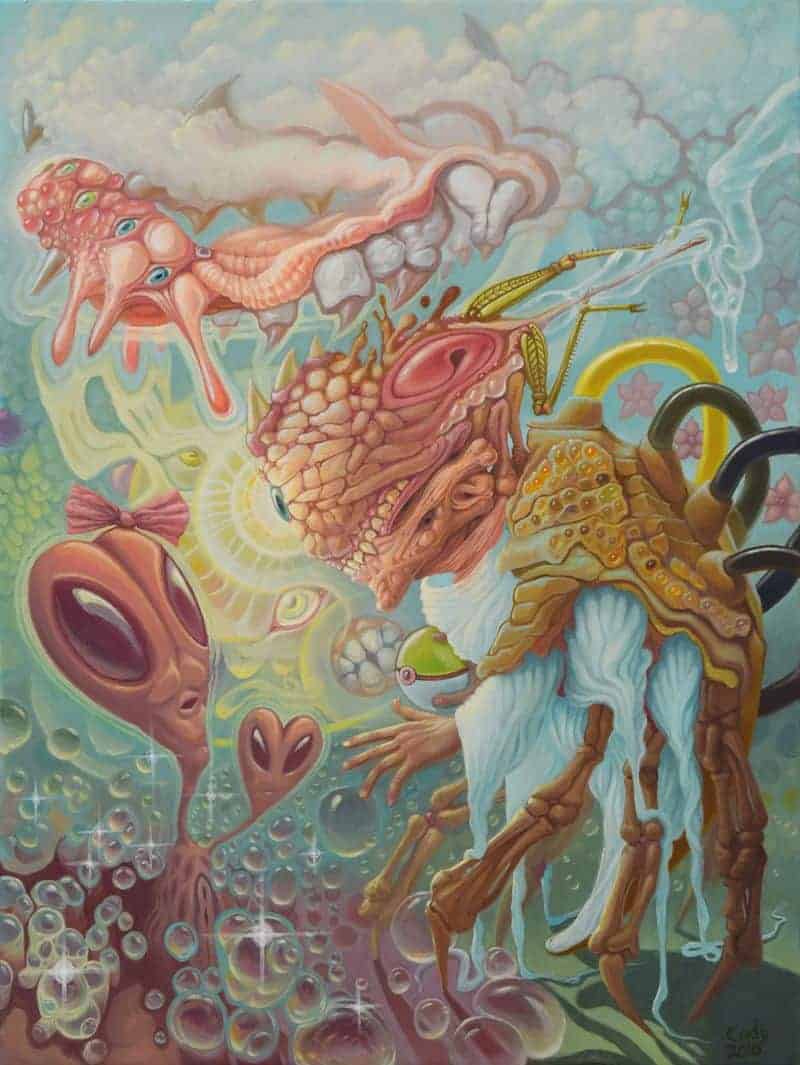 Die Kunst von Cody Seekins ist ein Mix aus bunten Drogen-Trips, neuinterpretiertem Hinduismus und Popkultur-Horror. Flashy Art mit einem religiös bestückten und leicht verstörenden Psychedelic-Style…