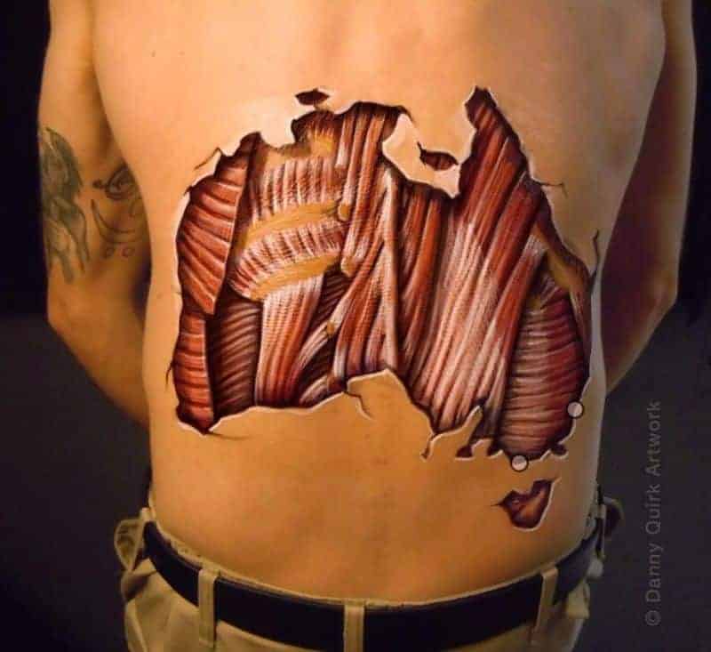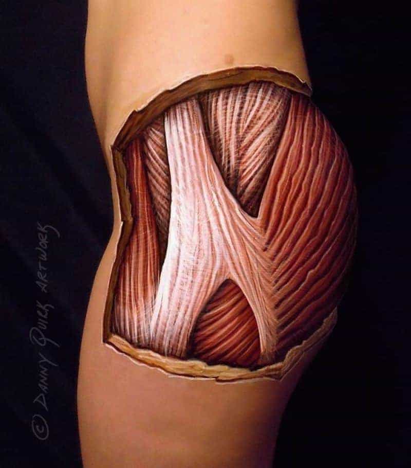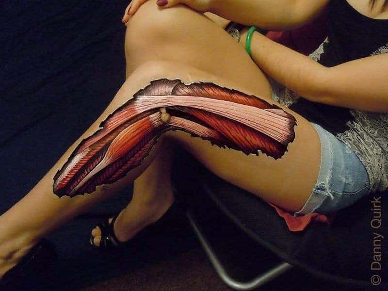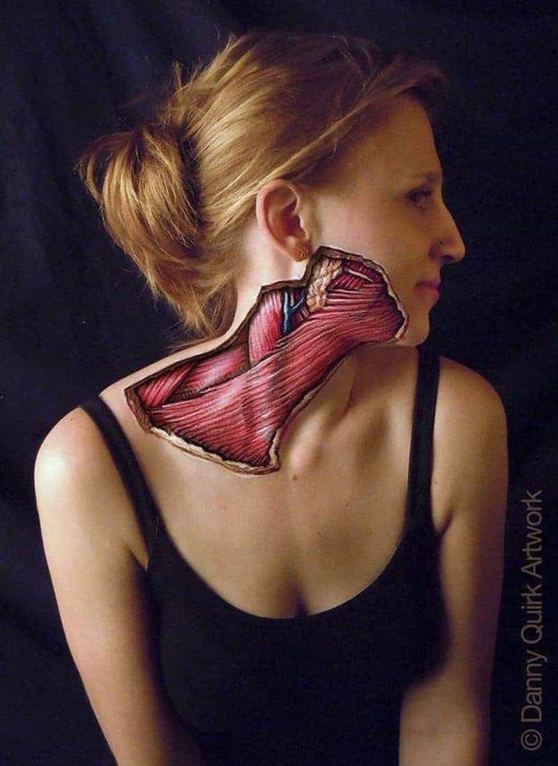 Danny Quirk ist ein junger amerikanischer Künstler, der die Wissenschaft auf ein völlig neues Niveau hebt. Mit flüssigem Latex, Acrylfarbe und Sharpie Permanentmarkern schafft Quirk realistische Gemälde direkt am menschlichen Körper, um seine erstaunlichen Innereien zu enthüllen. Das Interesse an der menschlichen Anatomie inspirierte Quirk zu den faszinierenden Kunstwerken, die so kompliziert aussehen, dass es fast gruselig ist. Quirks Mission ist es, medizinische Lehrbücher zum Leben zu erwecken…