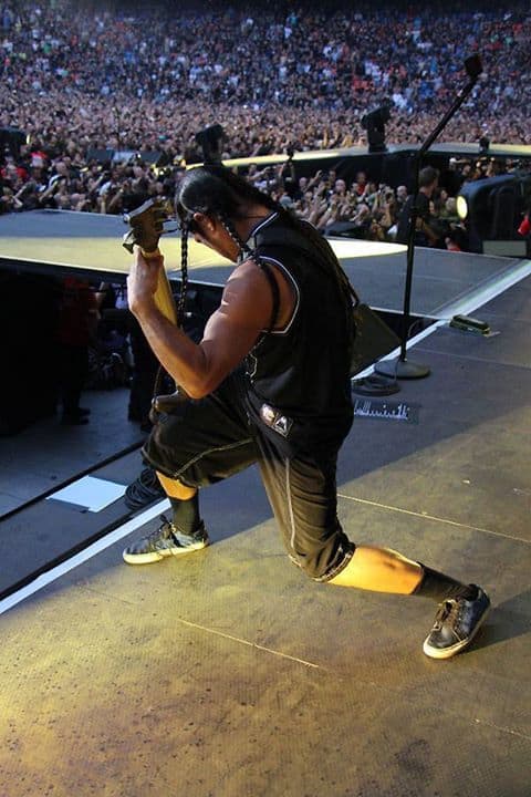 Im Publikum dominierte am Freitag ganz klar Schwarz, wie es sich für ein Metal(lica)-Konzert auch gehört. Doch schnell wurde klar, hier ist auch viel Mainstream unterwegs: Besucher mit karierten Hemden und beigen Shorts, Menschen mit Föhnfrisuren und Damen und Herren in Deutschlandtrikots – was gar nicht geht an einem Metal-Konzert. Sei’s drum, Hauptsache die Technik stimmt und hier wurde nicht gekleckert, sondern geklotzt und dass so richtig: Die Bühne ist 110 Tonnen schwer, rund 14 Kilometer Kabel wurden verlegt, 1200 Menschen sind am Tourtag im Einsatz und 55 40-Tonnen LKW’s karrten das Material heran. Zwei Kranwagen à 60 Tonnen und sieben Gabelstapler waren im Dauereinsatz, 312 Meter Traversen wurden montiert und elf Nightliner brachten Musiker und Crew an den Ort des Geschehens. Wie konnte eine Band, die derart harte Musik spielt, zu einer der grössten Rockbands überhaupt werden? Nur so zum Vergleich: Slayer und Anthrax, die seit den Achtzigerjahren zusammen mit Megadeth und Metallica die «Big Four» des Thrash Metal bilden, traten vor einem Monat gemeinsam im Z7 in Pratteln vor 1500 Leuten auf. Im Gegensatz zu ihren Weggefährten schrieben Metallica schon früh auch melodiöse und balladeske Stücke, doch das allein kann nicht erklären, wieso Zehntausende an Metallica Konzerte strömen. Dafür muss es noch einen anderen Grund geben und der heisst James Hetfield. Er gehört zu den wenigen Frontmännern, die mit ihrer Aura ein Stadion füllen können. Breitbeinig steht er da, präsent und lässt mit kumpelhafter Autorität keine Zweifel aufkommen, wer hier das Sagen hat.