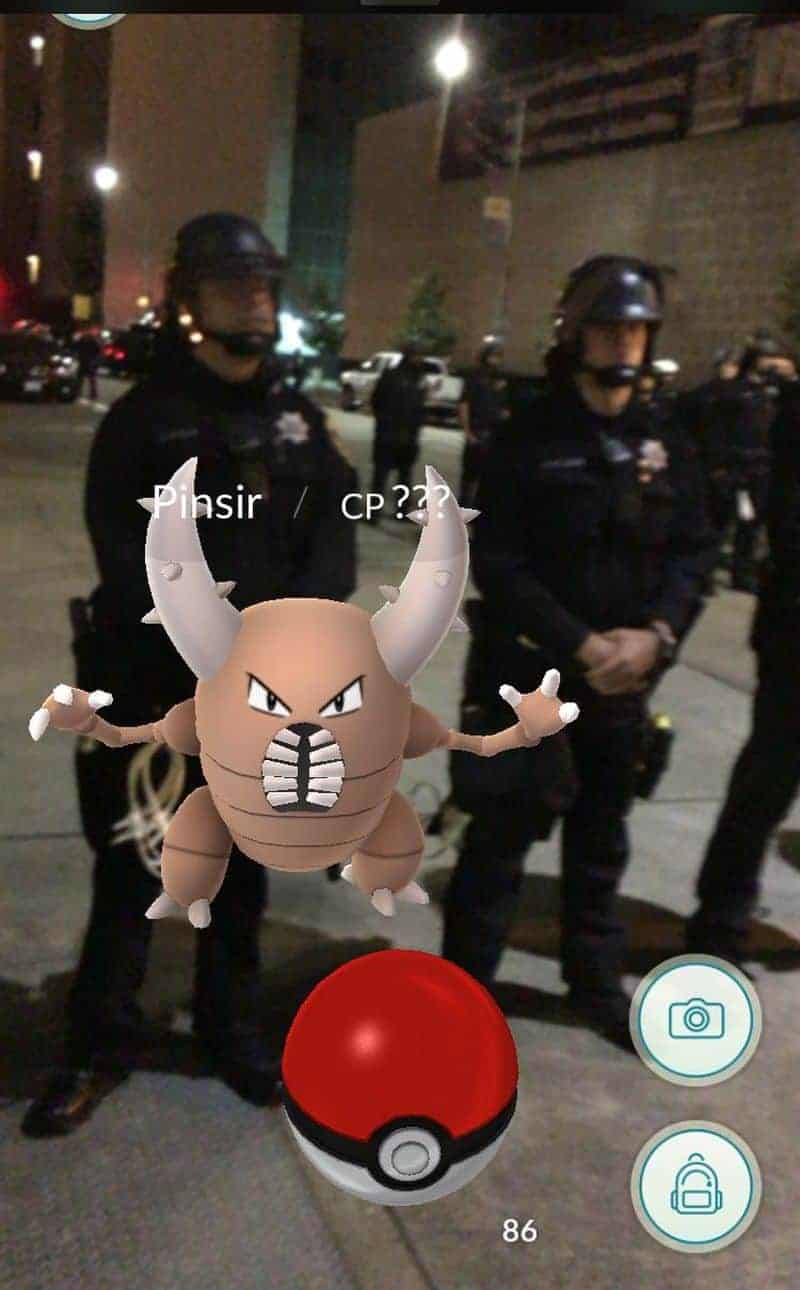 Ich habe mit Pokémon eigentlich gar nichts am laufen, aber ich dokumentiere die Auswüchse des Hypes um das Game, weil wir hier so ungefähr die erste Mainstream-Anwendung von Augmented Reality haben und mich die Wechselwirkungen von AR in Kombination mit Gamification mit urbanen Strukturen und Stadtkultur und, naja, Fleischsackrealität interessieren. Das Game selbst kann Nintendo gerne behalten. Hier ein Pokémon bei einer «Black Lives Matter»-Demo mitten unter Riot Cops. Eric Hu auf Twitter: «This week in a single photograph»…