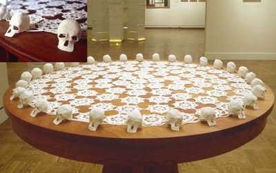 Eine sehr schön gearbeitete Decke habe ich auf dem nachfolgenden Bild gefunden. Schön wie statt irgendwelcher Bommel als Zierde zum Abschluss der Decke, kleine Totenschädel eingearbeitet wurden.